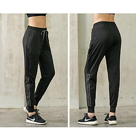 Quần jogger phối lưới sọc trắng tập gym thể thao yoga nữ Chất liệu bền chắc Chất vải co dãn 4 chiều, thấm hút mồ hôi Quần nâng mông tôn dáng cực kì luôn ạ