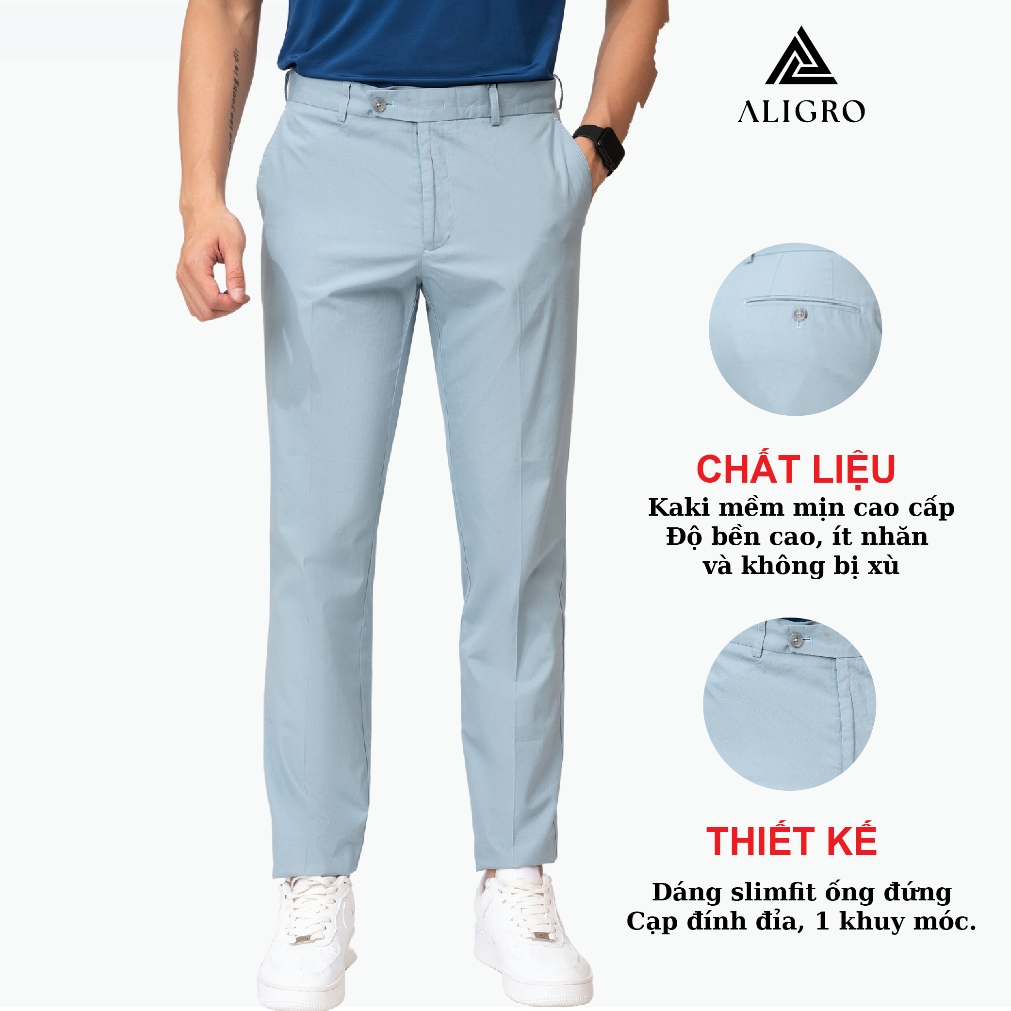 ✨Quần kaki nam ALIGRO trơn màu xanh da trời, ôm vừa, tôn dáng, thoải mái ALGK028