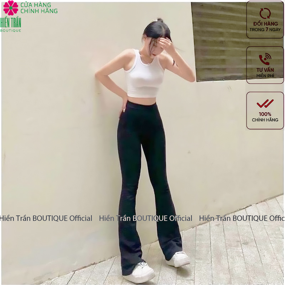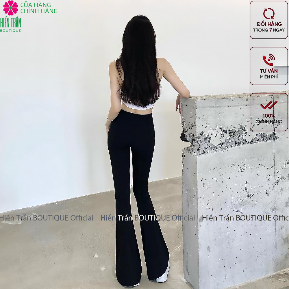 ✨Quần ống loe Hiền Trần BOUTIQUE nữ lưng cạp cao co giãn form đẹp legging bigsize vải Umi Hàn dày dặn dáng dài