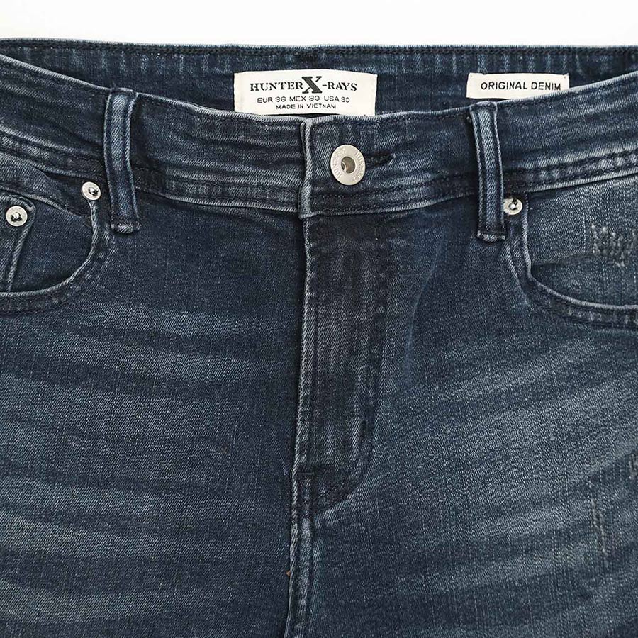 Quần Short Jeans Nam Rách Cao Cấp HUNTER X-RAYS Form Slim Thun Màu Xanh Đậm S78 Đặc điểm nổi bật: Nút được đúc nguyên khối bằng đồng và nổi bật thương hiệu HUNTER X-RAYS đảm