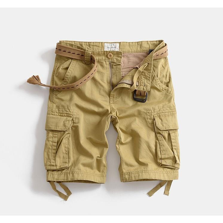 Quần short túi hộp_ngắn ( kèm thắt lưng ) Hàng nhập khẩu Vải kaki dày mịn đẹp , mặc rất thoáng mát Được wash nhẹ tạo độ mịn và bụi Phom áo chuẩn phù hợp