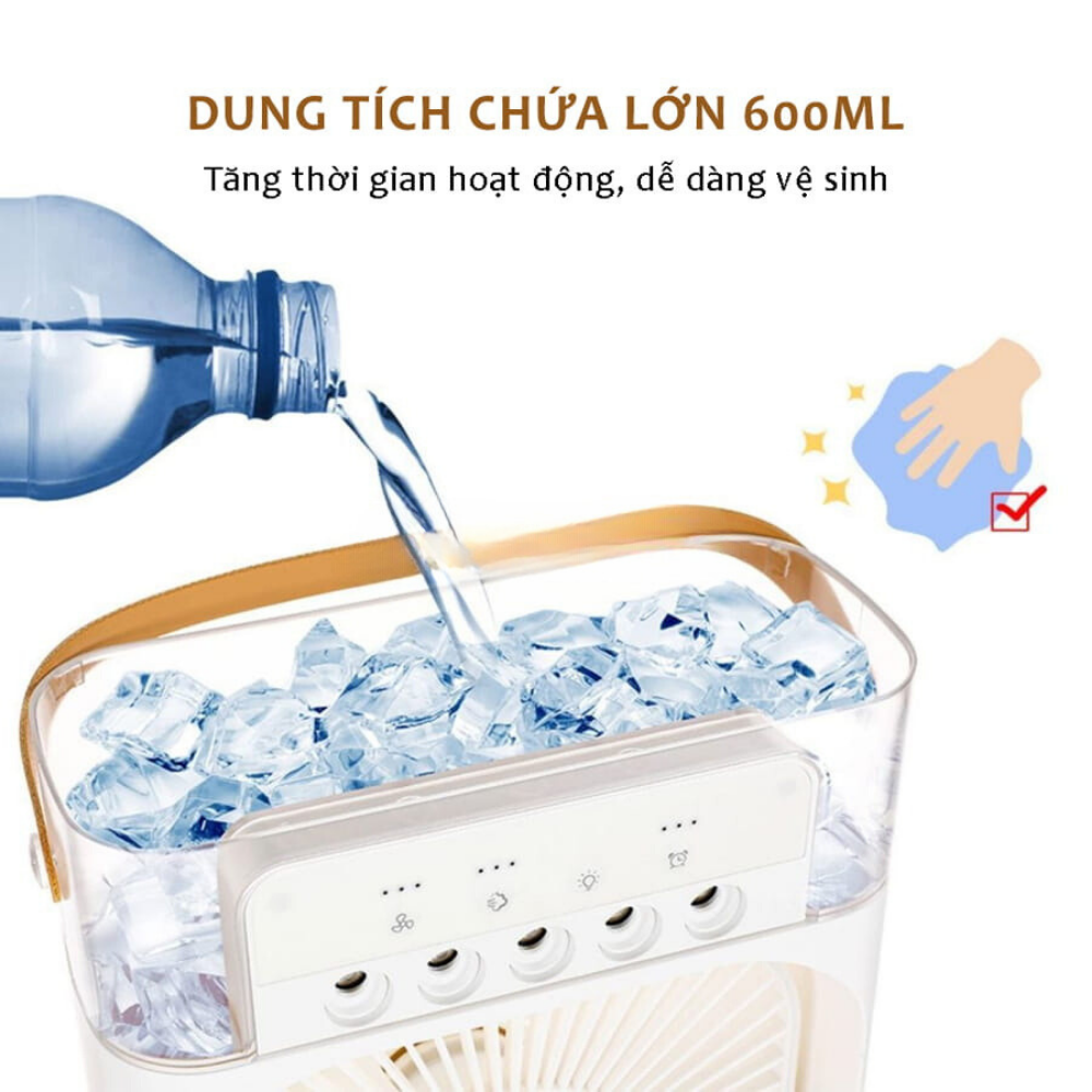Quạt điều hòa hơi nước mini, Quạt phun sương tạo ẩm làm mát để bàn, hẹn giờ thông minh tích hợp đèn
