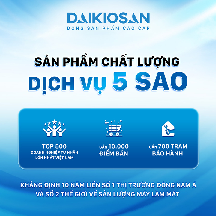 Quạt điều hòa không khí Daikiosan tự hào là thương hiệu đồng hành bên lâu trong suốt 10 năm liền tại thị trường Đông Nam Á, đứng thứ 2 toàn cầu về sản xuất máy làm mát (quạt điều hòa). Hơn 700 trạm bảo hành trải dài khắp cả nước, đội ngũ hỗ trợ chất lượng luôn sẵn sàng, đảm bảo trải nghiệm hàng đầu cho khách hàng. Để biết thêm thông tin về sản phẩm và chương trình khuyến mãi tốt nhất, để được tư vấn và chọn mua quạt điều hoà không khí (máy làm mát) Daikiosan DM202.