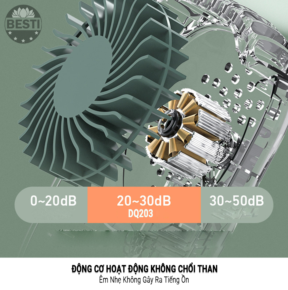 Với động cơ không chổi than bền bỉ và giúp giảm tiếng ồn.