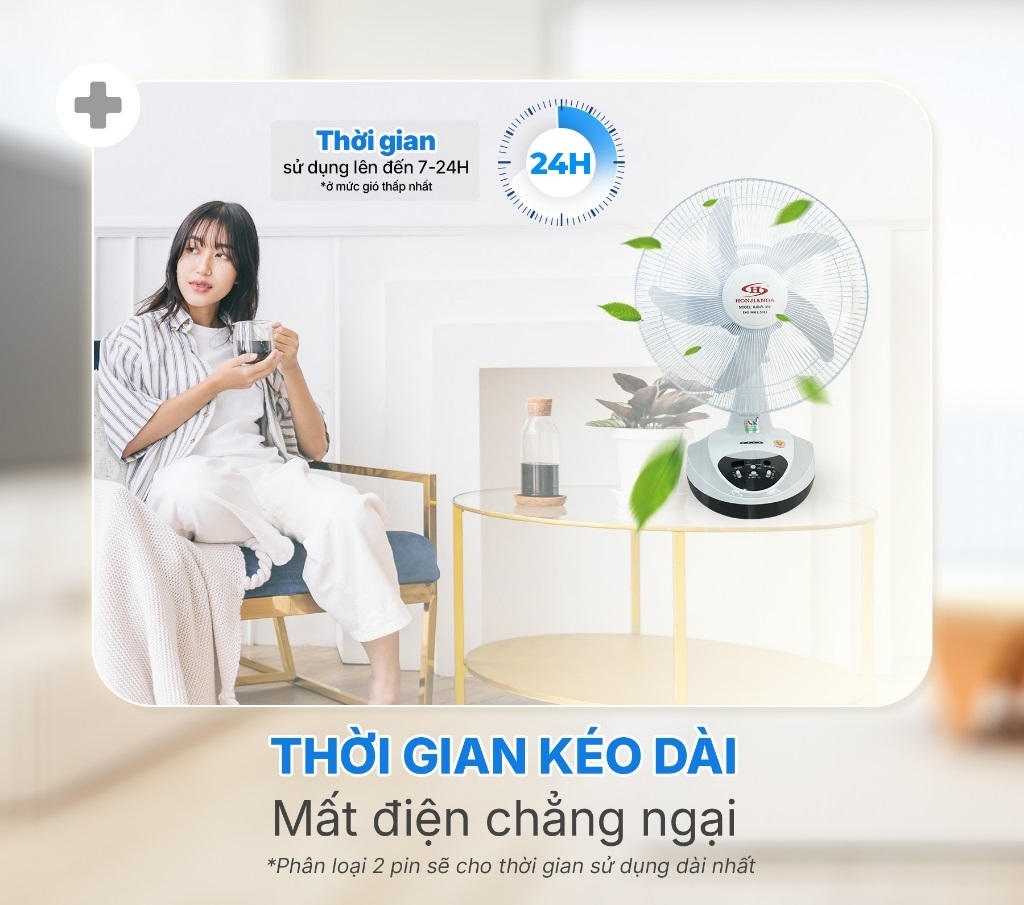 THÔNG TIN SẢN PHẨM:     Thời gian sử dụng liên tục lên đến 8 tiếng   Với dung lượng pin 1200mAh, quạt có thể sử dụng liên tục lên đến 8 tiếng      Nhỏ gọn    CHẾ ĐỘ BẢO HÀNH:   Sản phẩm được bảo hành ĐỔI MỚI trong 18 tháng trong trường hợp lỗi của nhà sản xuất. Tem bảo hành còn nguyên vẹn,