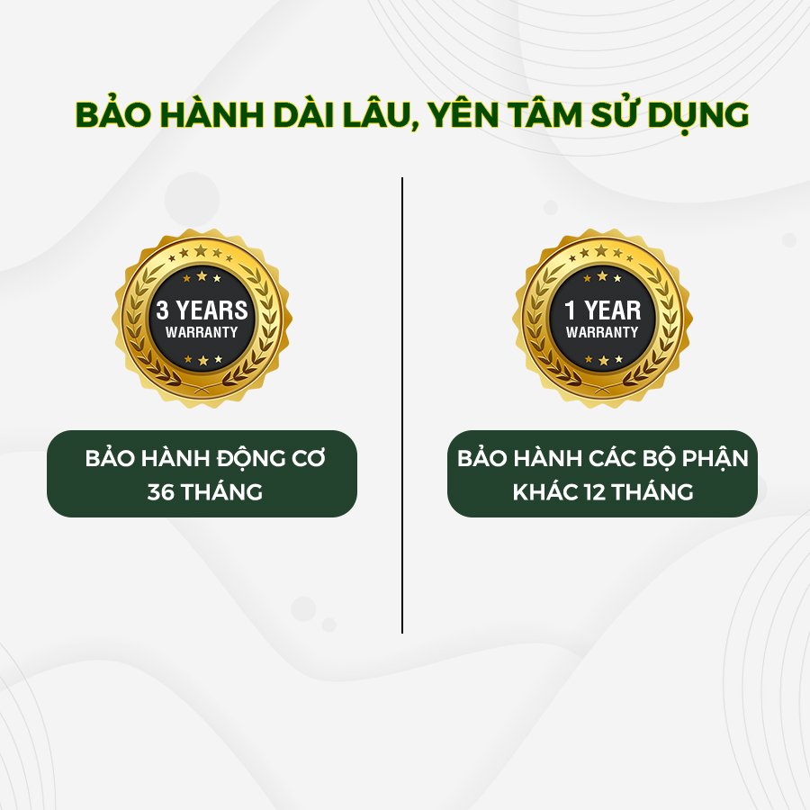 - BẢO HÀNH ĐỘNG CƠ ĐẾN 36 THÁNG