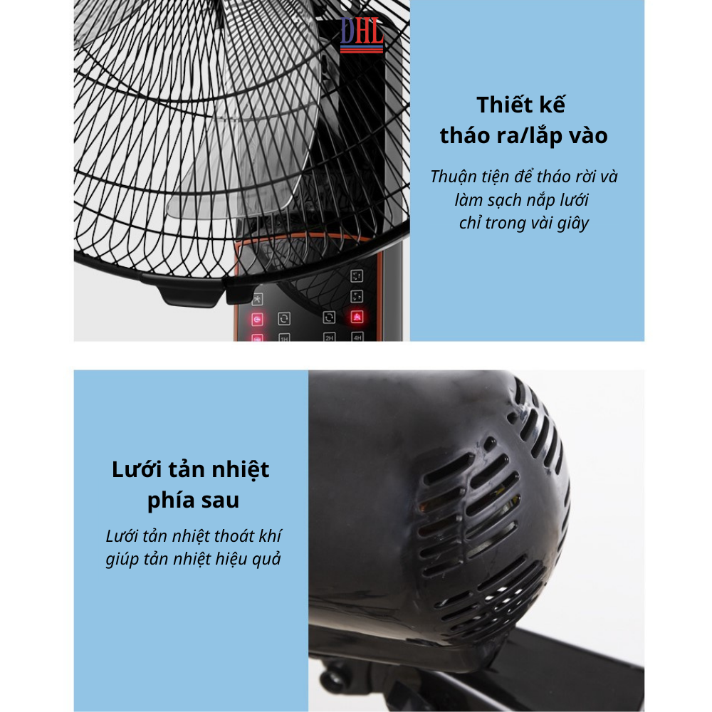 có kiểu dáng hiện đại, thiết kế treo tường tiết kiệm diện tích Lồng quạt đan khít rất an toàn cho người dùng, chất liệu cao cấp ít bám bụi, dễ 3 cánh quạt