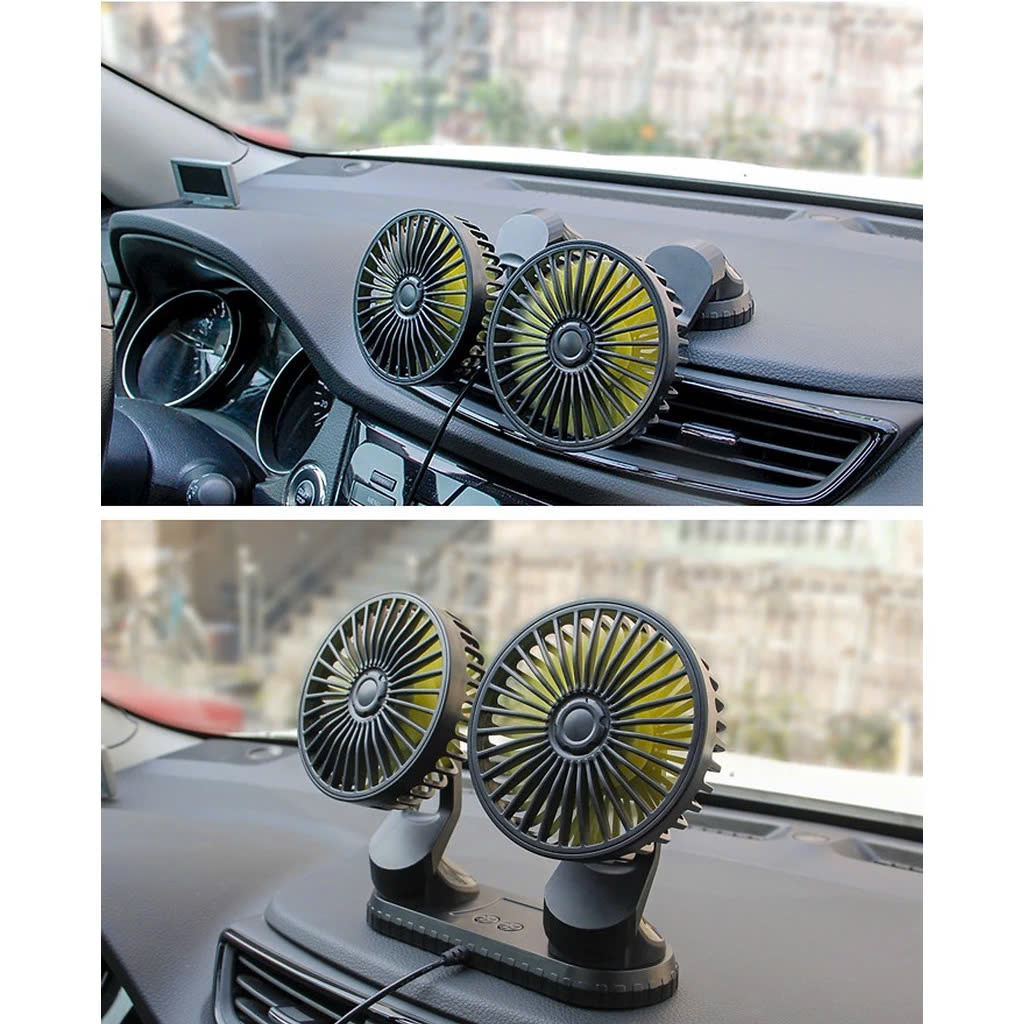 Quạt Đôi Trên Ô Tô 12V/24V ,Quạt Đôi Mini Cho Xe Hơi Xoay 360 Độ,Đầu Cắm Sạc USB Tiện Lợi - Kiên BRL