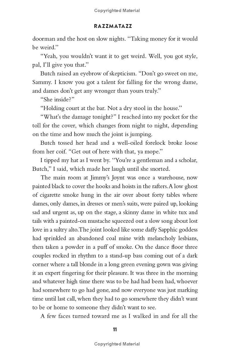 San Francisco, 1947. Bartender Sammy “Two Toes” Tiffin and the rest of the Cookie’s Coffee Irregulars—a ragtag bunch of working mugs last seen in Noir—are on the hustle: they’re trying to open a driving school; shanghai an abusive Swedish stevedore; get Mable, the local madam, and her girls to a Christmas party at the State Hospital without alerting the overzealous head of the S.F.P.D. vice squad; all while Sammy’s girlfriend, Stilton ( the Cheese), and her “Wendy the Welder” gal pals are using their wartime shipbuilding skills on a secret project that might be attracting the attention of some government Men in Black. And, oh yeah, someone is murdering the city’s drag kings and club owner Jimmy Vasco is sure she’s next on the list and wants Sammy to find the killer.