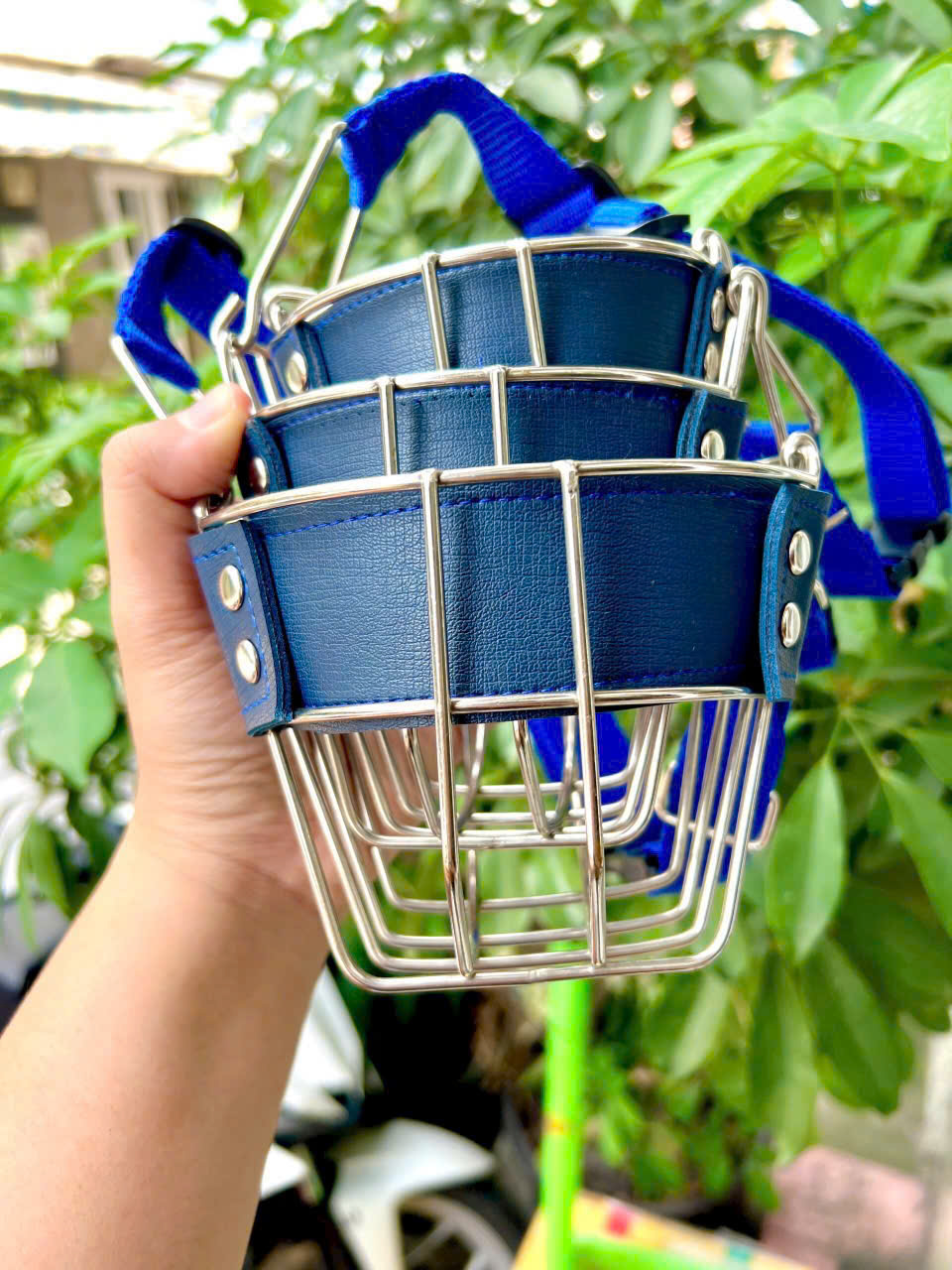 Thiết kế : Màu xanh và nâu trơn, rọ mõm inox