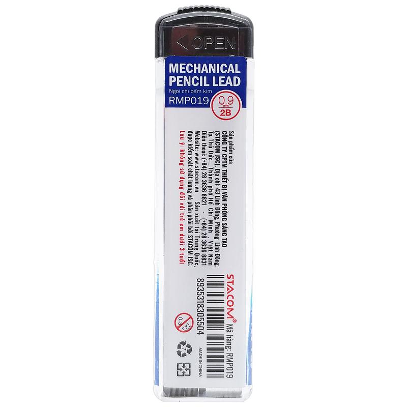 Ruột Bút Chì Kim Bấm 2B 0.9 mm - Stacom RMP019 Phù hợp với nhiều loại bút chì, độ đậm 2B đạt chuẩn, mang lại những chữ viết đậm nét, rõ ràng và mượt mà.