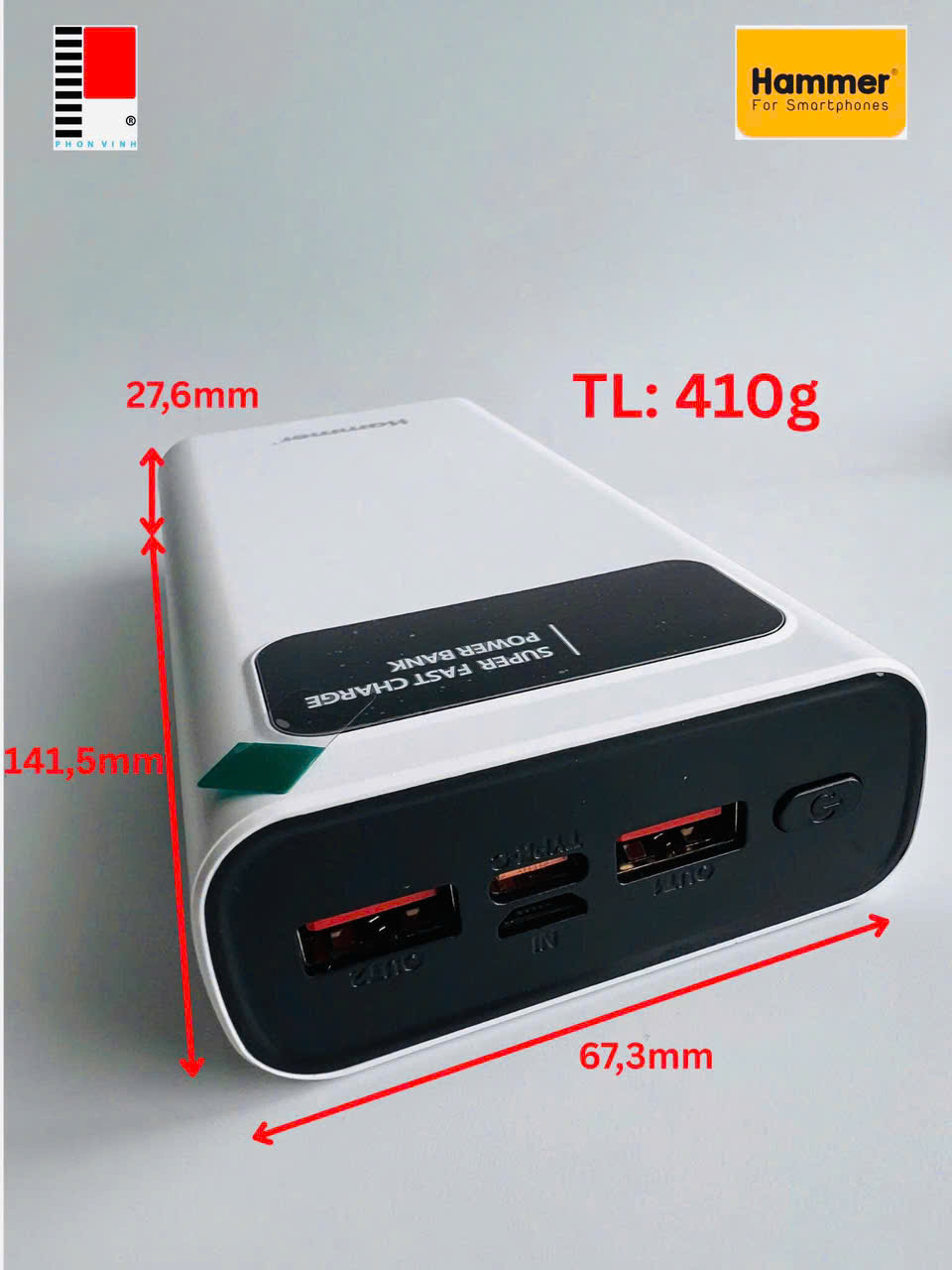 Sạc dự phòng Ham mer H-88 22.5W - 20.000mAh, Kim Ánh cam kết hàng chính hãng bảo hành 12 tháng