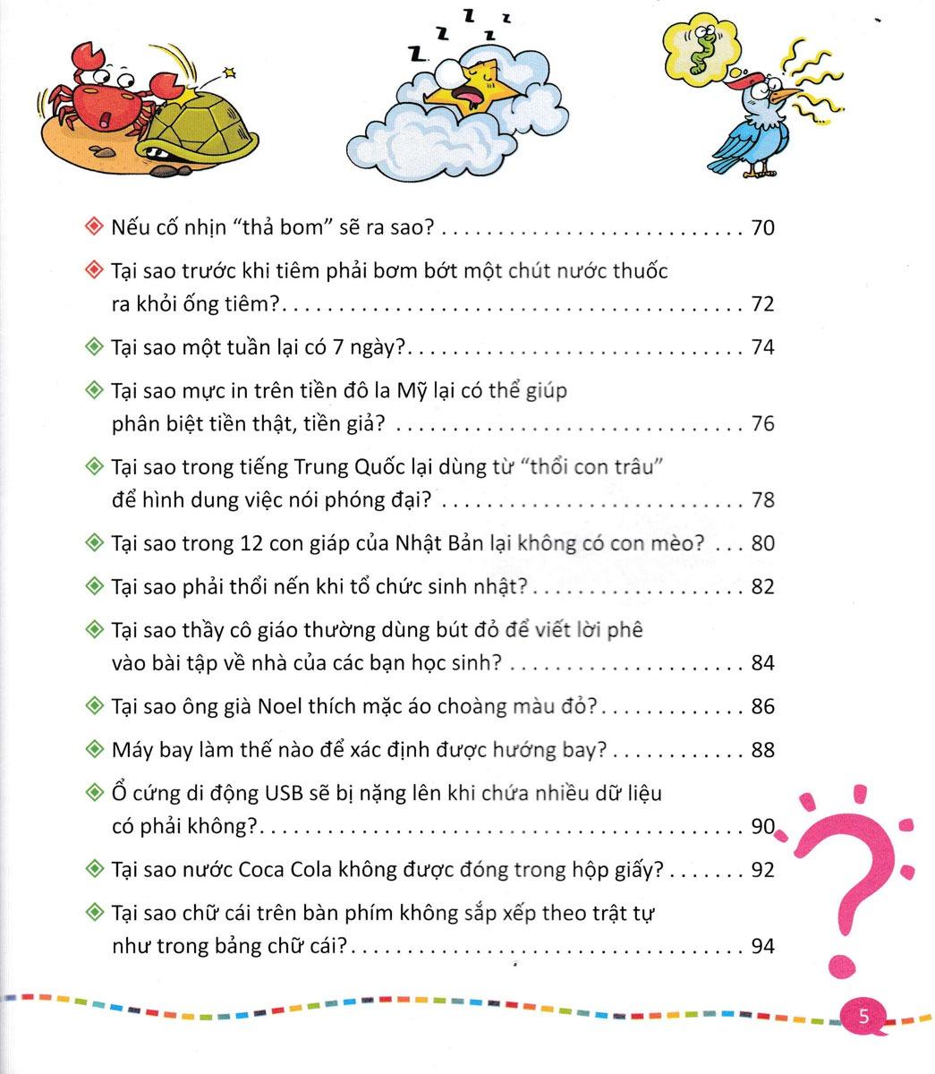 Bộ sách “10 vạn câu hỏi vì sao" tuyển chọn 270 câu hỏi mà trẻ em tò mò nhất với tiêu chí thú vị, thần kì, mới mẻ, đặc sắc. Trong cuốn sách có những lời giải thích khoa học, những hình ảnh minh họa đẹp, để trẻ tiếp nhận kiến thức khoa học với tâm trạng thoải mái, vui vẻ nhất. Trong mỗi cột câu hỏi còn thiết kế ở riêng biệt để trẻ trình bày những điều m.ình hiểu về vấn đề đó. Đó có thể là những câu trả lời ngộ nghĩnh, trí tưởng tượng bay bổng, giúp chúng ta thấy được sự ngây thơ đáng yêu của trẻ.