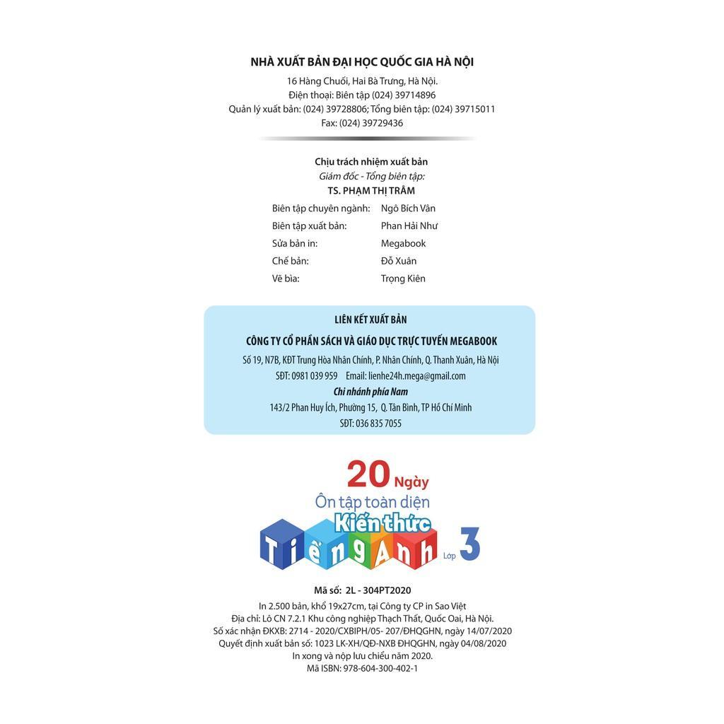 ✨Sách - 20 Ngày Ôn Tập Toàn Diện Kiến Thức Tiếng Anh Lớp 3 - Megabook