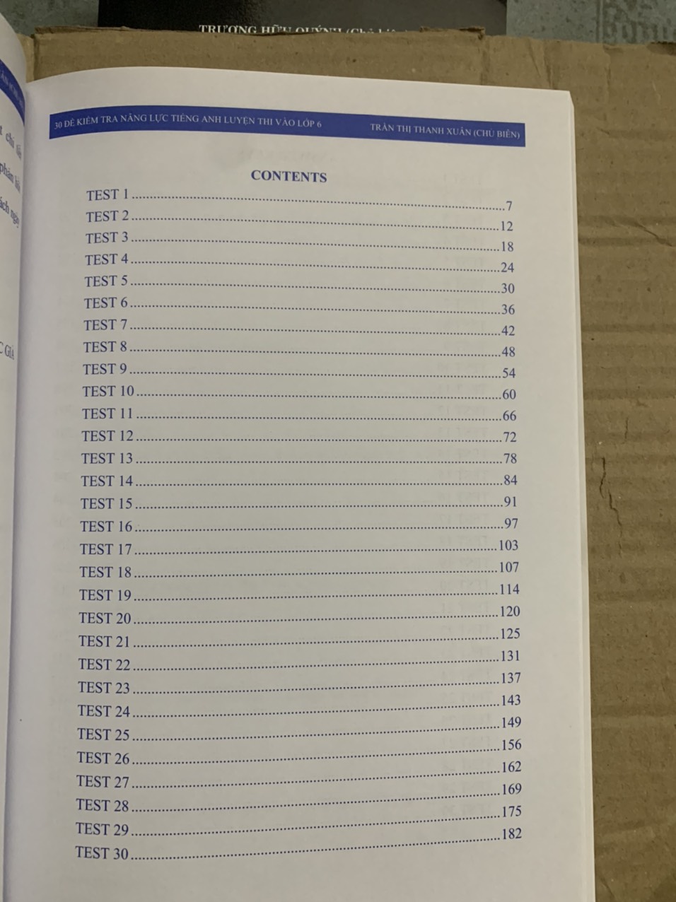 Mua tại TiktokNội dùng gồm có: Sách gồm 30 đề thi thử môn tiếng Anh, mỗi đề gồm 25 câu hỏi với các kiểu bài phong phú và đa dạng kiểm tra kiến thức về ngữ âm, từ vựng, ngữ pháp và bắt đầu làm quen với các bài tập viết ngắn. Phần cuối phần cuối cuốn sách này đã bán cho các đề thi Contents Test 1 Test 2 Test 3 Test 4 Test 5 Test 30 Answer keys Tác giả: Trần Thị Thanh Xuân, Phí Thị Hương Giang, Nguyễn Thu Trang, Nguyễn Thanh Vân, Hà Thu ngân, Trần Thị Oanh, Ts. Kasey Hames ( Hiệu đính ) Số trang: 219 Xuất bản: 2020 Nhà xuất bản: Đại học quốc gia Hà Nội Công ty phát hành: Nxb Đại học quốc gia Hà Nội