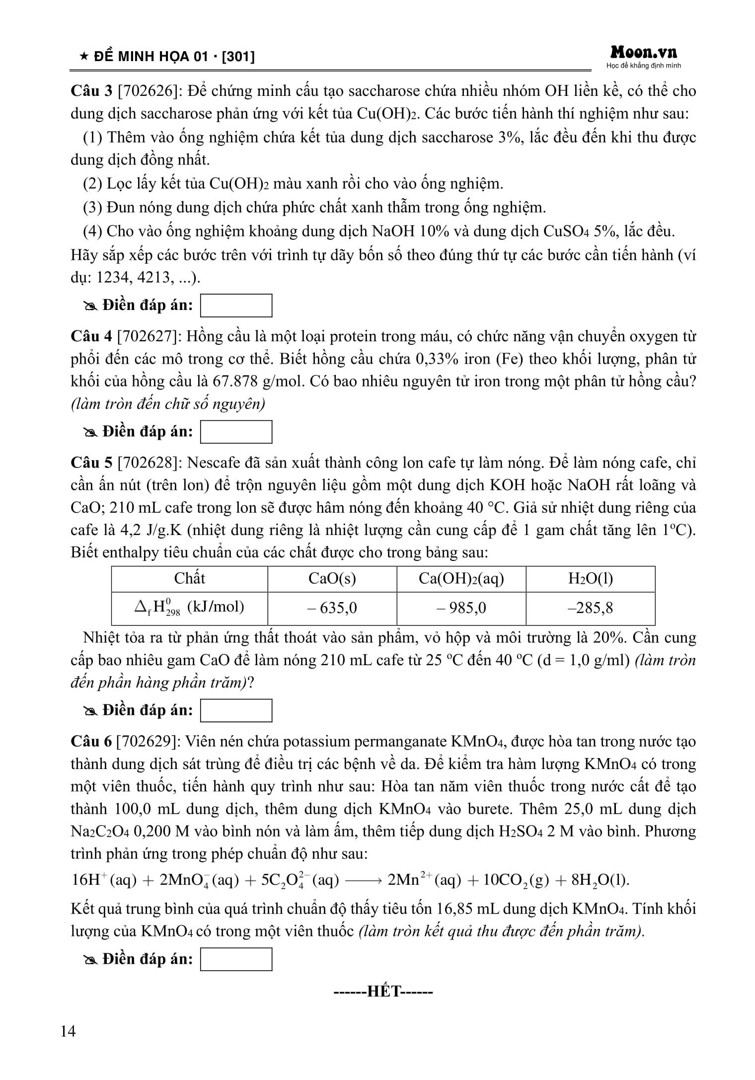 50 Đề Minh Họa Tốt Nghiệp THPT 2025 - Môn Hóa Học