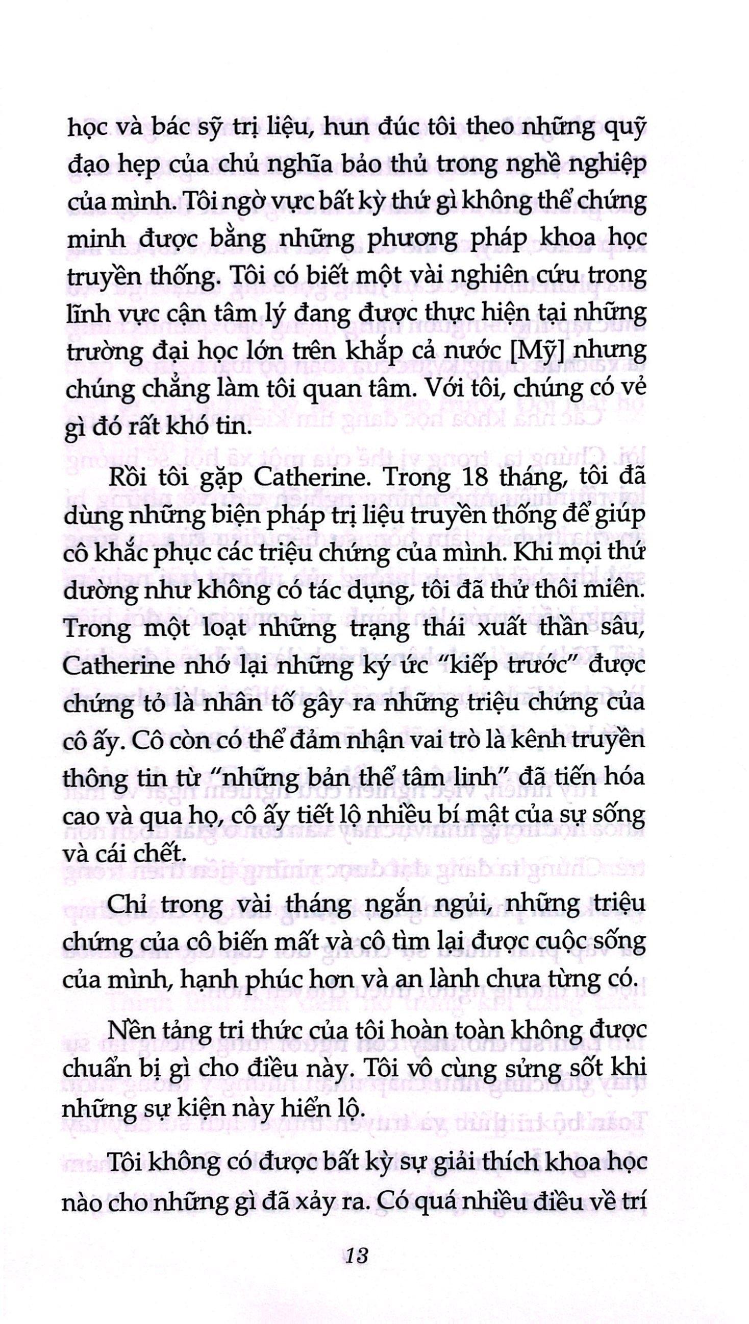 Cuốn sách hay và khiêu khích suy nghĩ này đã phá vở những rào cản trong trị liệu tâm lý truyền thống và trình bày một biện pháp trị liệu cách tân và hiệu quả cao. Những ai làm việc chuyên về sức khỏe tâm thần cần phải xem xét nó nghiêm túc.” – Edith Fiore, TS., bác sỹ tâm lý học lâm sàng và là tác giả cuốn sách Bạn từng ở đây trước kia (You Have Been Here Before)