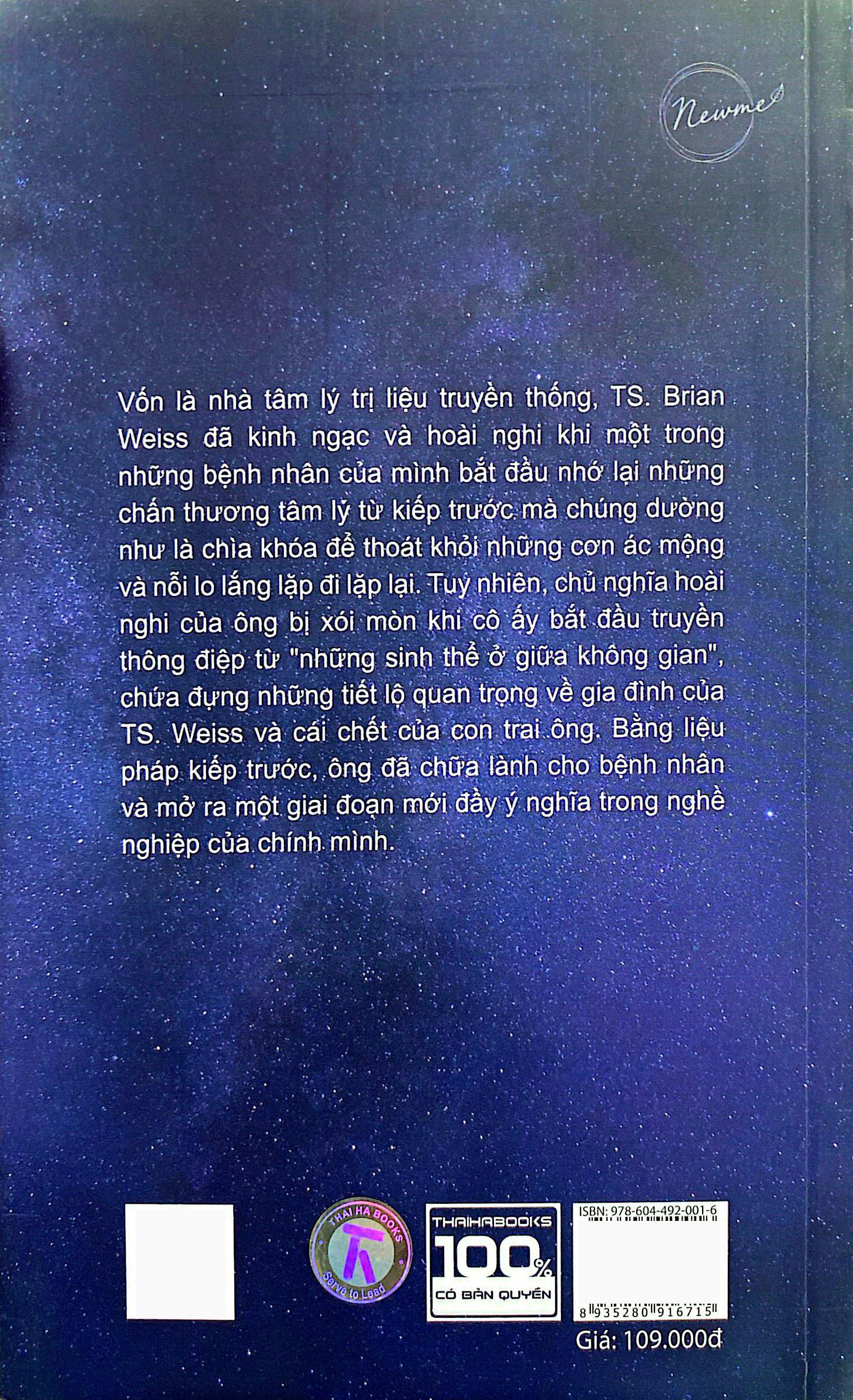 Vốn là nhà tâm lý trị liệu truyền thống, TS. Brian Weiss đã kinh ngạc và bi quan khi một trong những bệnh nhân của m.ình bắt đầu nhớ lại những chấn thương trong kiếp trước mà chúng dường như là chìa khóa để giải quyết những cơn ác mộng và lo lắng lặp đi lặp lại. Tuy nhiên, chủ nghĩa bi quan của ông bị xói mòn khi cô ấy bắt đầu phát những thông điệp từ “những sinh thể ở giữa không gian,” chứa đựng những tiết lộ quan trọng về gia đình của TS. Weiss và cái chết của con trai ông. Bằng biện pháp kiếp trước, ông có khả năng chữa lành cho bệnh nhân và mở ra một giai đoạn mới đầy ý nghĩa trong nghề nghiệp của chính m.ình.