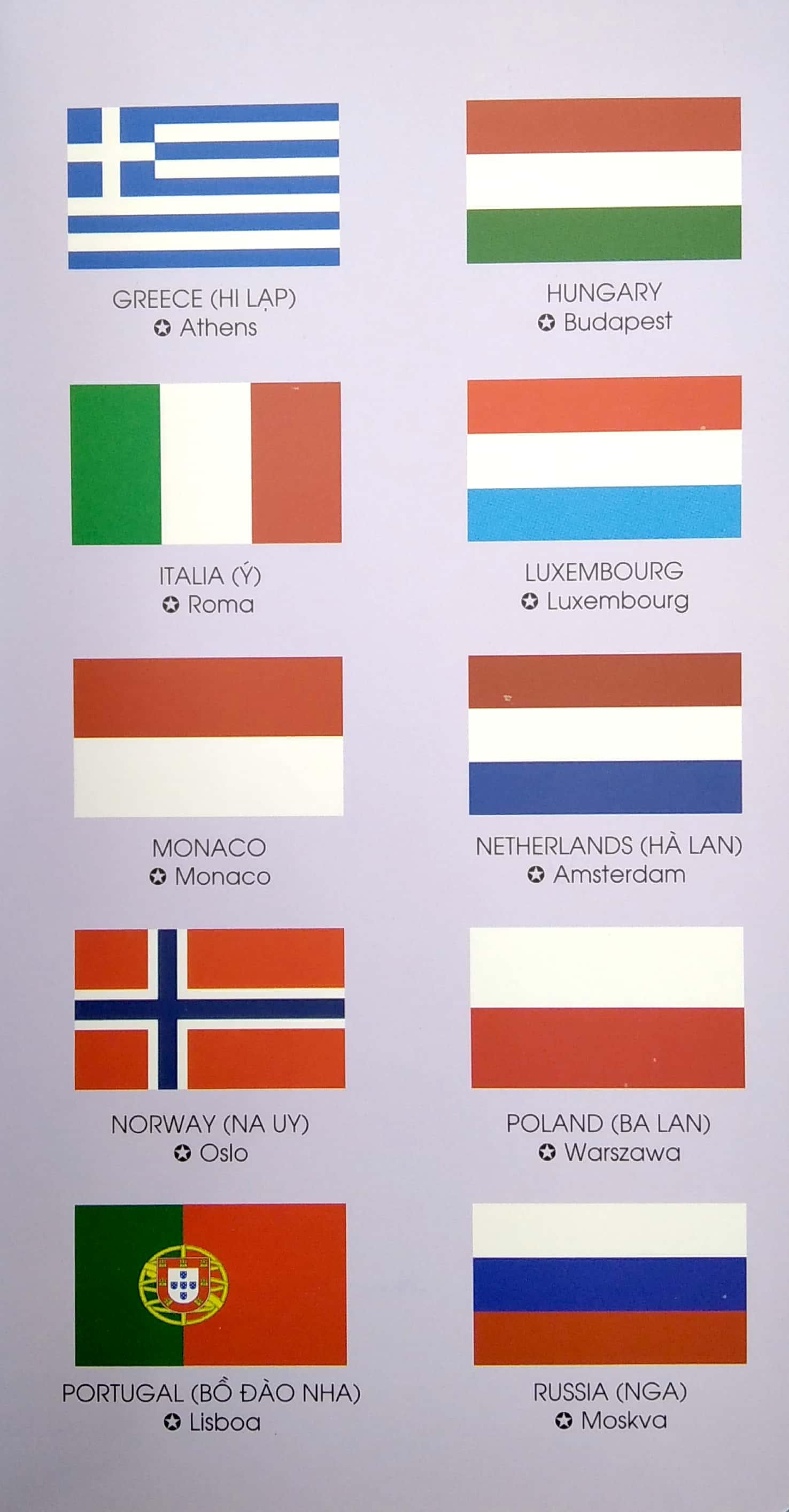 - Học tên nước và thủ đô bằng cả tiếng Việt và tiếng Anh.
