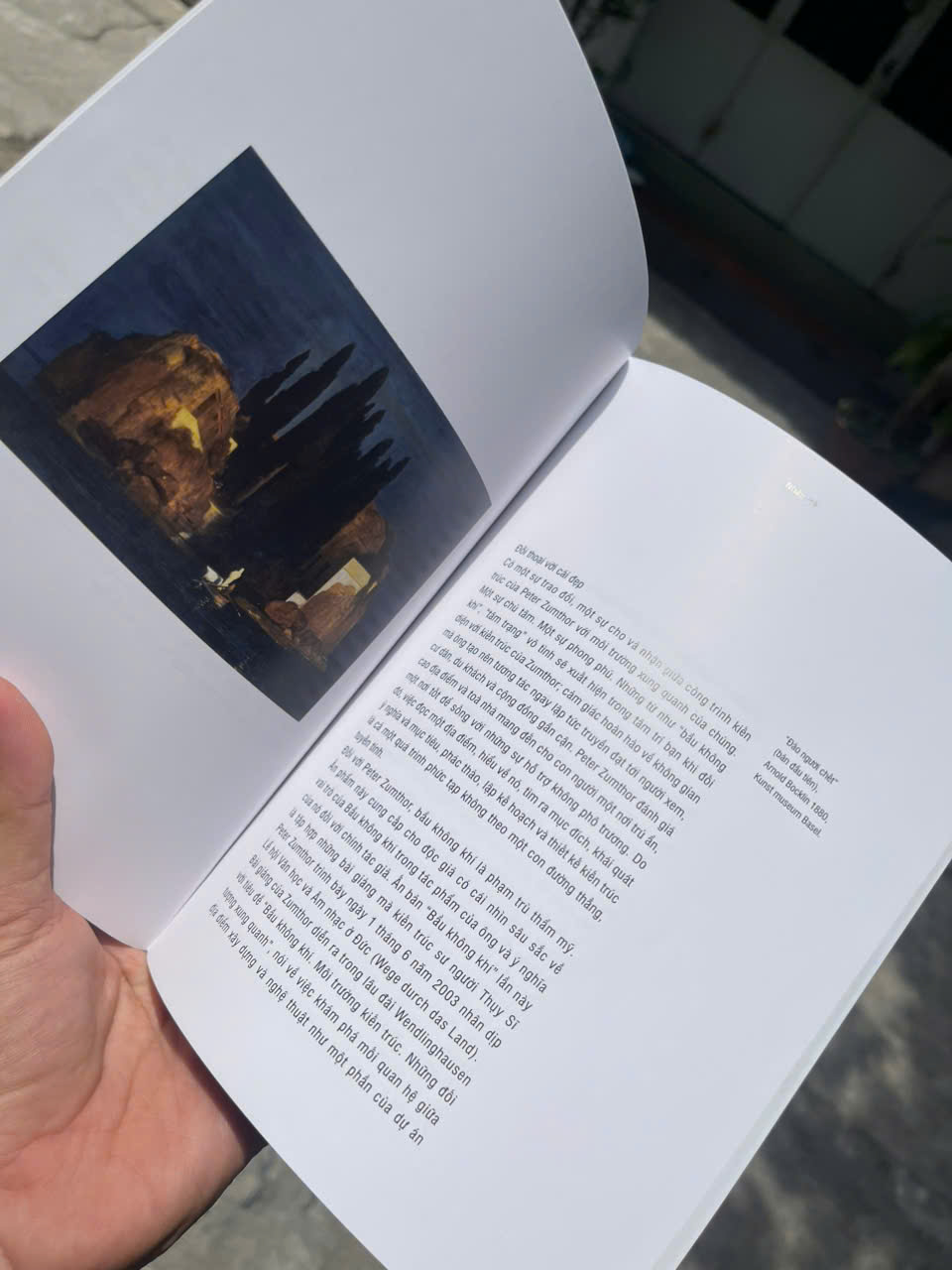 Cuốn sách "Bầu không khí" (Atmospheres) của Peter Zumthor là một tác phẩm ngắn gọn nhưng sâu sắc, trong đó kiến trúc sư nổi tiếng người Thụy Sĩ chia sẻ những suy ngẫm cá nhân