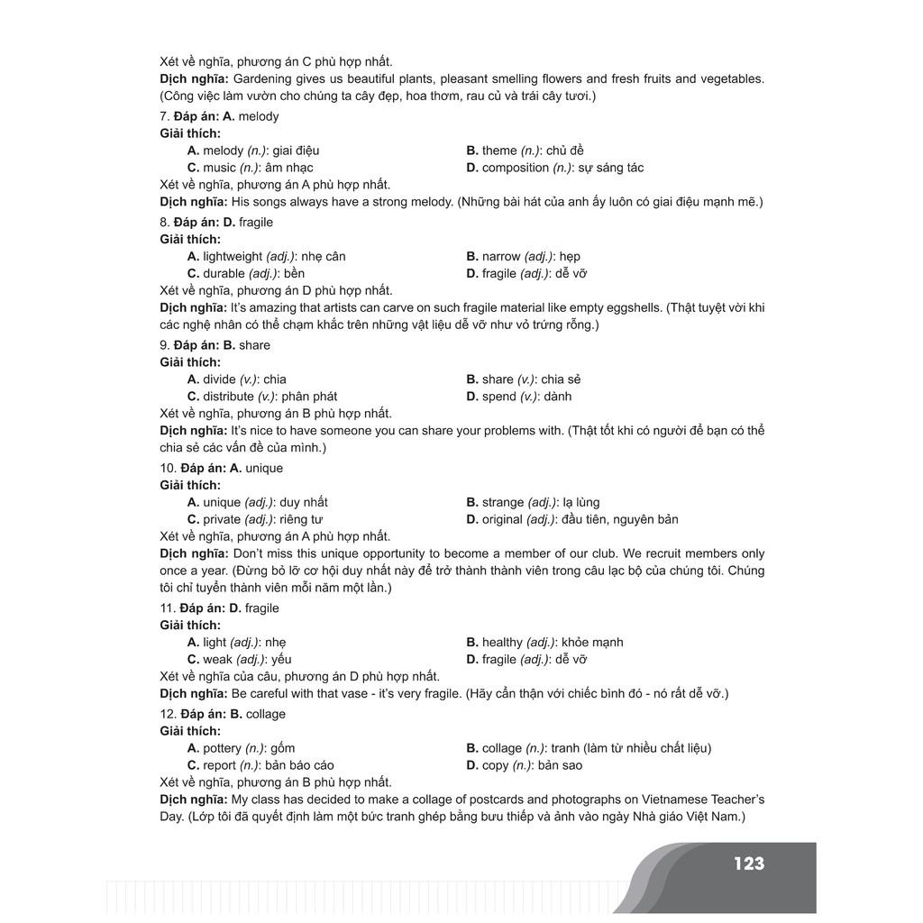 Hệ thống đáp án với dịch nghĩa chi tiết giúp các em thuận lợi trong quá trình tự học và ôn luyện.
