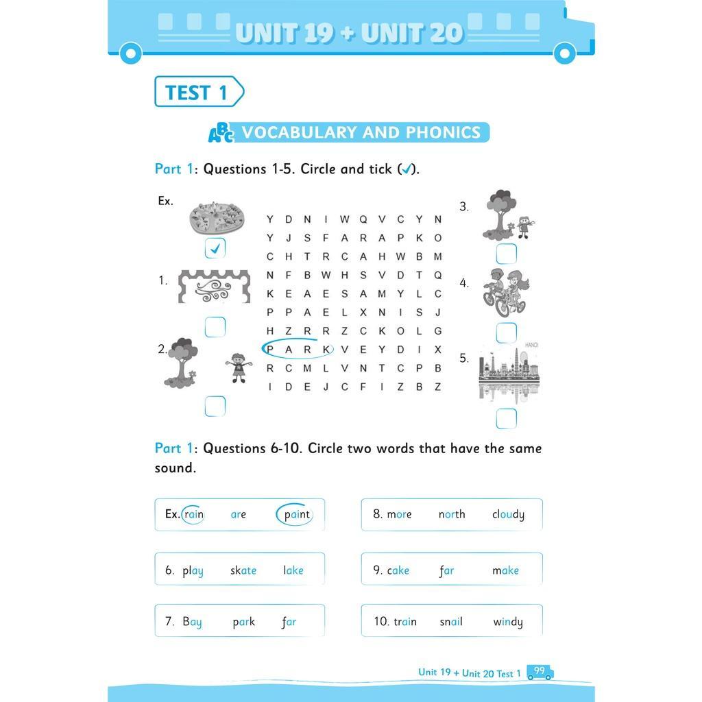 Big 4 Bộ Đề Tự Kiểm Tra 4 Kỹ Năng Nghe – Nói – Đọc – Viết (Cơ Bản và Nâng Cao) Tiếng Anh Lớp 3 viết theo chuẩn khung chương trình mới của Bộ Giáo Dục và Đào Tạo giúp các em học sinh lớp 3 củng cố và phát triển toàn diện các kỹ năng: Nghe – Nói – Đọc – Viết Tiếng Anh. Cuốn sách thích hợp cho giáo viên sử dụng như tài liệu giảng dạy tham khảo hoặc phụ huynh - người muốn tìm tài liệu kèm con học Tiếng Anh tại nhà. Nội dung của cuốn sách gồm hệ thống bài tập luyện 4 kỹ năng cơ bản giúp các em em ôn tập kiến thức trên lớp và bài tập mở rộng nâng cao để các em rèn luyện và làm quen với các kì kiểm tra đánh giá. Cứ hai bài sẽ có 2 bài kiểm tra, tất cả các bài kiểm tra đều được thiết kế theo quy định thông tư mới nhất về kiểm tra môn Tiếng Anh tiểu học. Cấu trúc cuốn sách gồm 5 phần: Vocabulary and Phonetics Listening Reading Writing Speaking Điểm đặc biệt của cuốn sách là tính hiện đại và sự tiện dụng khi các em không cần sử dụng CD để có được bài nghe. Bộ sách tích hợp mã QR code và mã Code giúp các em dễ dàng có được file nghe chi tiết với chiếc Smartphone. Với bộ sách bố mẹ sẽ giúp bé tiến bộ từng ngày, tự tin với khả năng ngôn ngữ của mình khi ôn luyện Tiếng Anh bởi các bài tập về 4 kỹ năng: Nghe – Nói – Đọc – Viết được liên kết với nhau theo logic của bài học.
