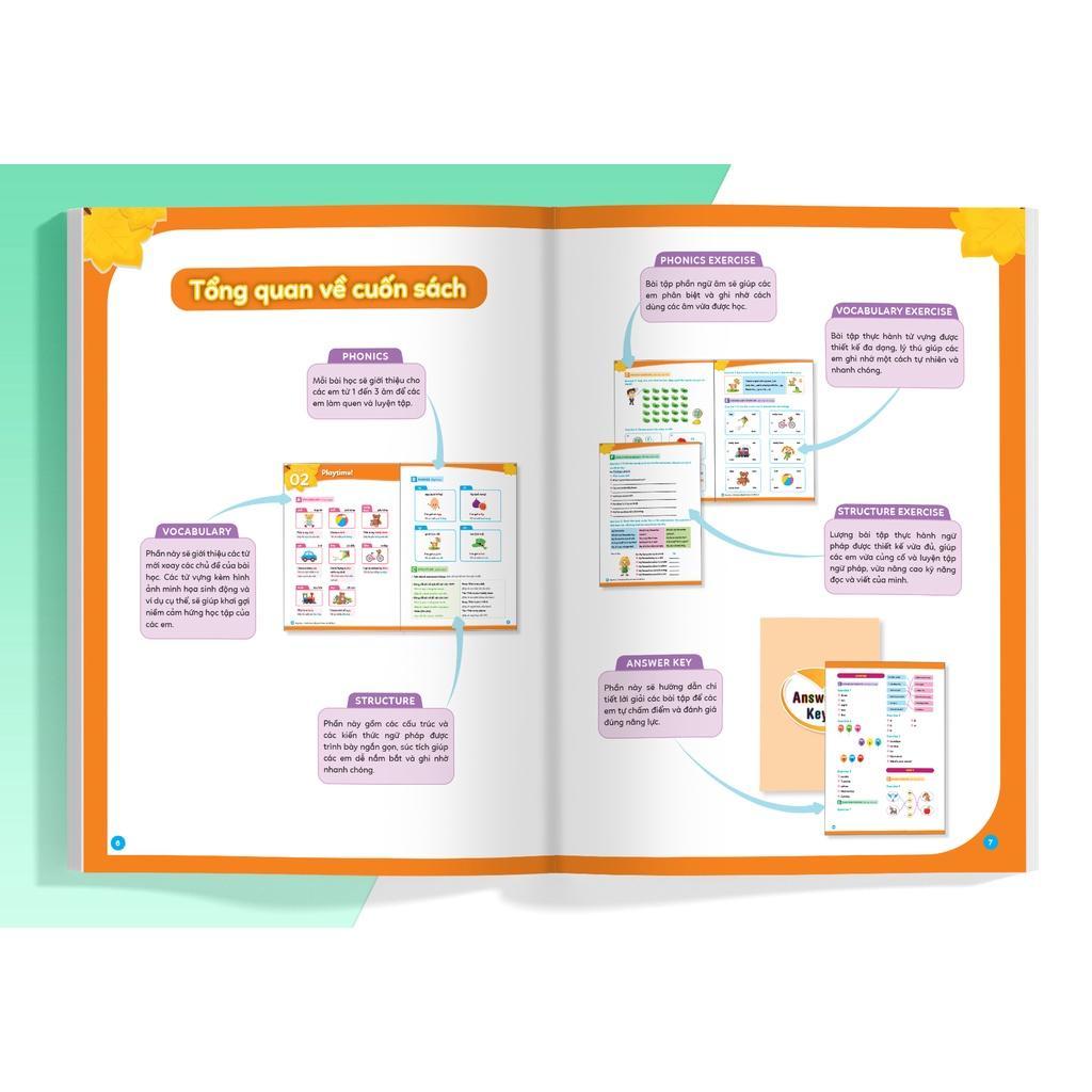 - Big Hero Chinh phục tiếng Anh theo chủ đề lớp 2 Bộ sách BIG HERO – Chinh phục tiếng anh theo chủ đề lớp 1 2, là 1 trong 5 cuốn nằm trong bộ BIG HERO – Chinh phục tiếng anh theo chủ đề, dành riêng cho các bạn học sinh tiểu học từ lớp 1 đến lớp 5. Bộ sách là tài liệu tham khảo đầy đủ, toàn diện, với phần lý thuyết và bài tập của đủ các mảng kiến thức: từ vựng, ngữ âm, ngữ pháp. Mỗi cuốn gồm 9 đến 12 chủ đề thân thuộc với các em. Lồng ghép trong mỗi chủ đề chính là các kiến thức và bài tập tiếng Anh, mỗi bài học gồm các phần: VOCABULARY (Từ vựng) PHONICS (Ngữ âm) STRUCTURE (Cấu trúc) PHONICS EXERCISE (Bài tập ngữ âm) VOCABULARY EXERCISE (Bài tập từ vựng) STRUCTURE EXERCISE (Bài tập cấu trúc) ANSWER KEY (Đáp án chi tiết) Cuốn sách được thiết kế với nội dung và hình ảnh sinh động, cấu trúc chặt chẽ, rõ ràng. Chắc chắn đây sẽ là một bộ tài liệu vô cùng hữu ích dành cho các em trên con đường học tiếng Anh.