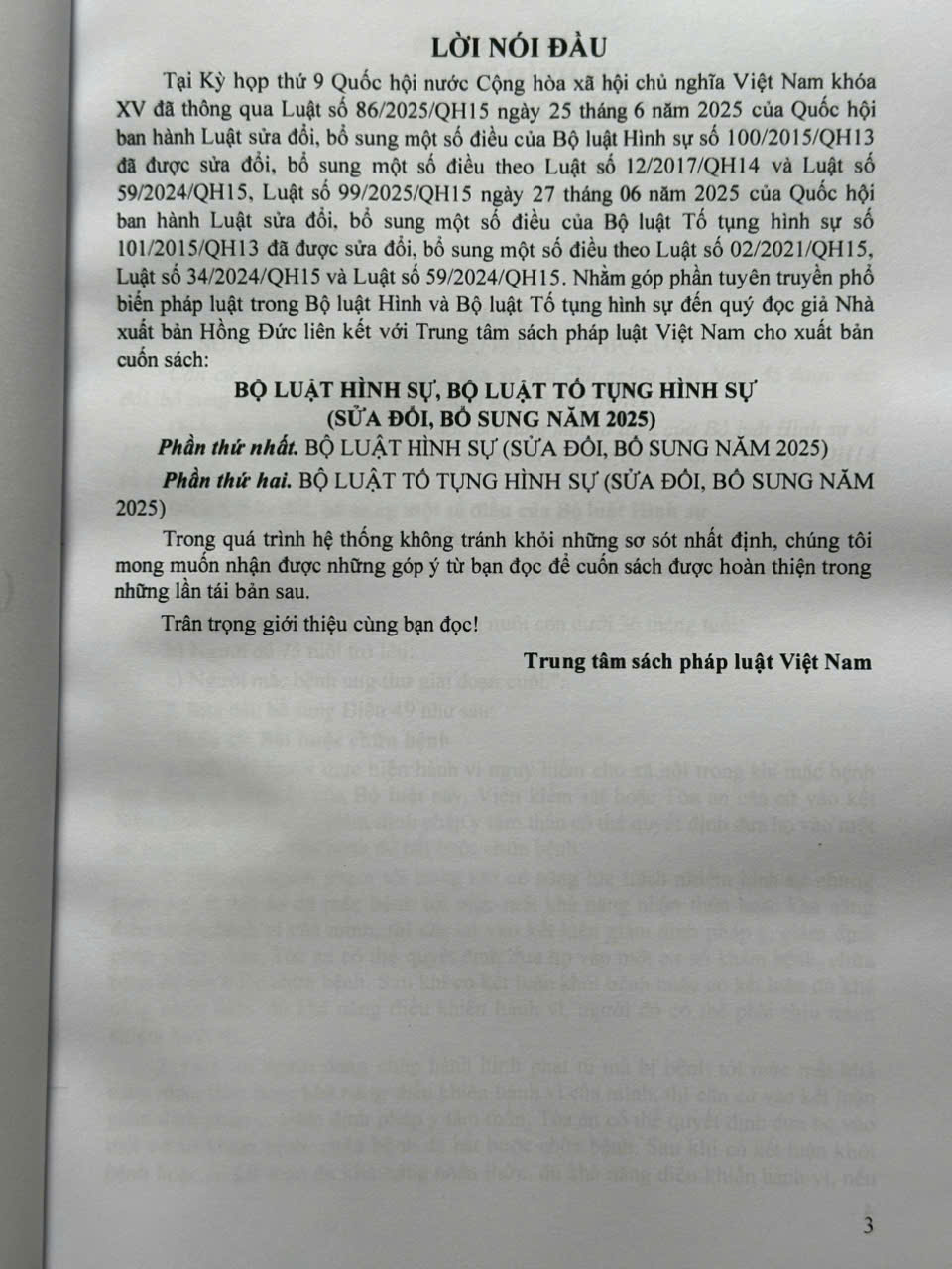 Nhà sách Nam Việt – Namvietbook xin trân trọng giới thiệu bộ 2 cuốn sách: Bộ Luật Hình Sự năm 2015, Bộ Luật Tố Tụng Hình Sự năm 2015 sửa đổi, bổ sung năm 2025