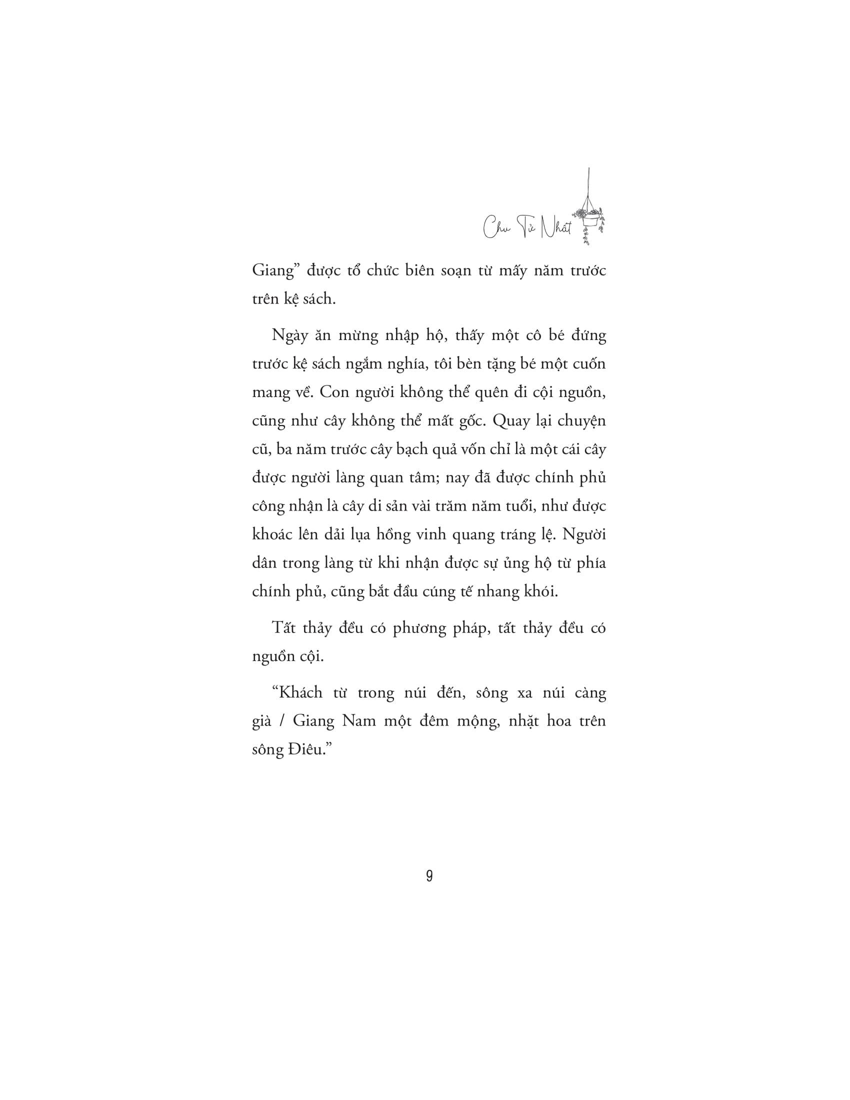 Cuốn sách không chỉ là một lời nhắn nhủ về việc tìm lại giá trị bản thân, mà còn là tiếng nói đồng cảm với những bạn trẻ hiện đại đang khát khao "bỏ phố" để tìm kiếm sự cân bằng và ý nghĩa mới trong cuộc sống. Thông qua câu chuyện của m.ình, Chu Tử Nhất mang đến một góc nhìn đầy cảm hứng về lối sống gần gũi với thiên nhiên: một cuộc sống chậm rãi, nhưng sâu sắc và giàu kết nối. Anh học cách hòa m.ình vào nhịp sống bình dị của nông thôn, xây dựng mối quan hệ chân thành với những người dân bản địa, và từ đó, khám phá cách biến cuộc sống ở quê nhà không chỉ là sự tồn tại, mà còn là sự thăng hoa đầy ý nghĩa.