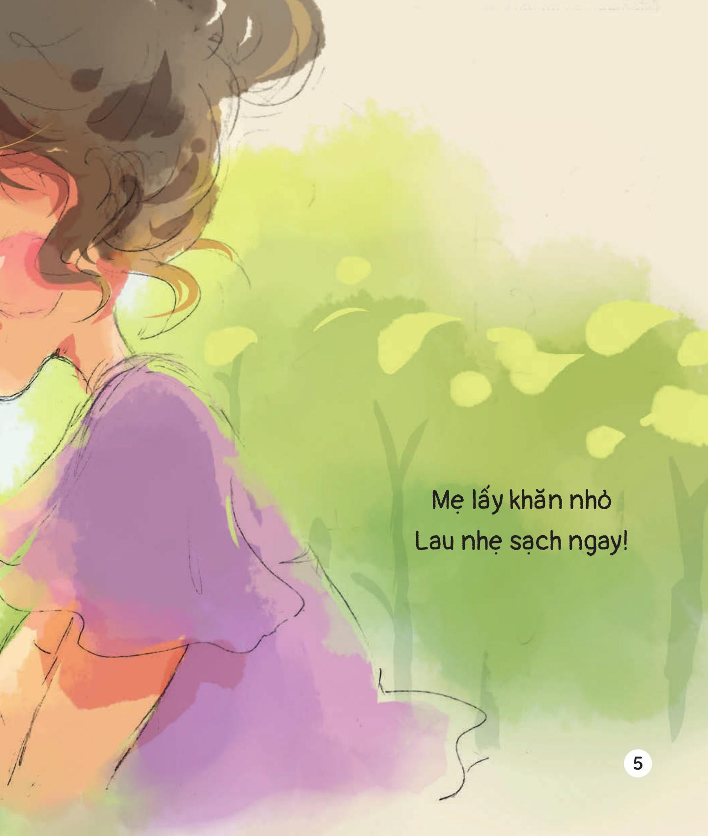 “Bé con bệnh rồi” là lời thủ thỉ về những lúc con ốm – khi yêu thương hiện rõ trong ánh mắt mẹ, trong bàn tay dịu dàng chăm sóc. Con học được cách lắng nghe cơ thể, hợp tác để mau khỏe và biết trân trọng tình yêu của mẹ.