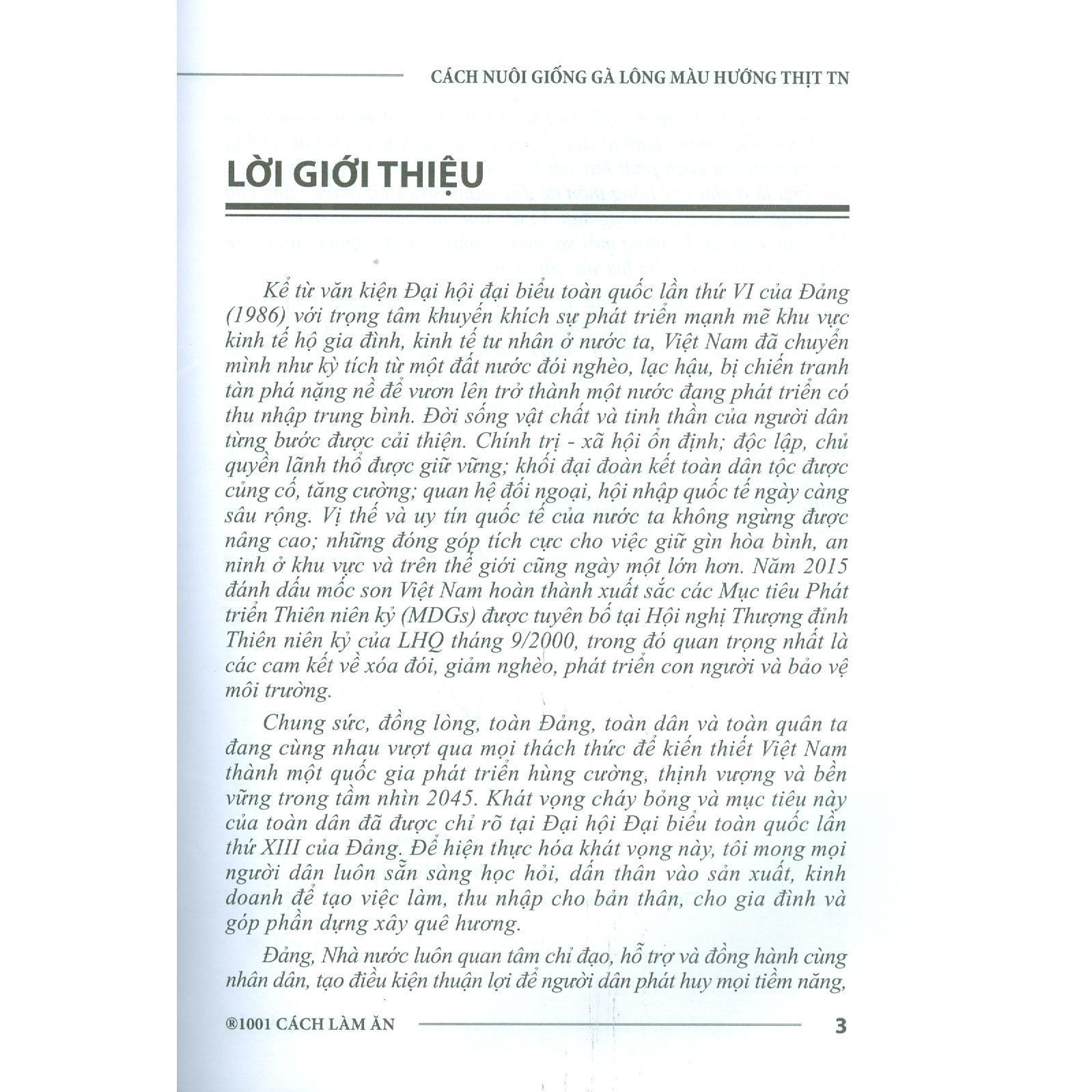 Mua tại TiktokCông ty TNHH MTV Nhà xuất bản Nông nghiệp, Ban biên tập và các nhà khoa học, các chuyên gia đã tổ chức biên soạn, xuất bản bộ sách "1001 cách làm ăn" để hướng dẫn cho người dân các kiến thức khoa học, công nghệ phổ thông, ứng dụng khoa học công nghệ mới, dạy nghề, và phổ biến các cách làm ăn thành công. Cuốn sách "Cách Nuôi Giống Gà Lông Màu Hướng Thịt TN" gồm 4 phần;