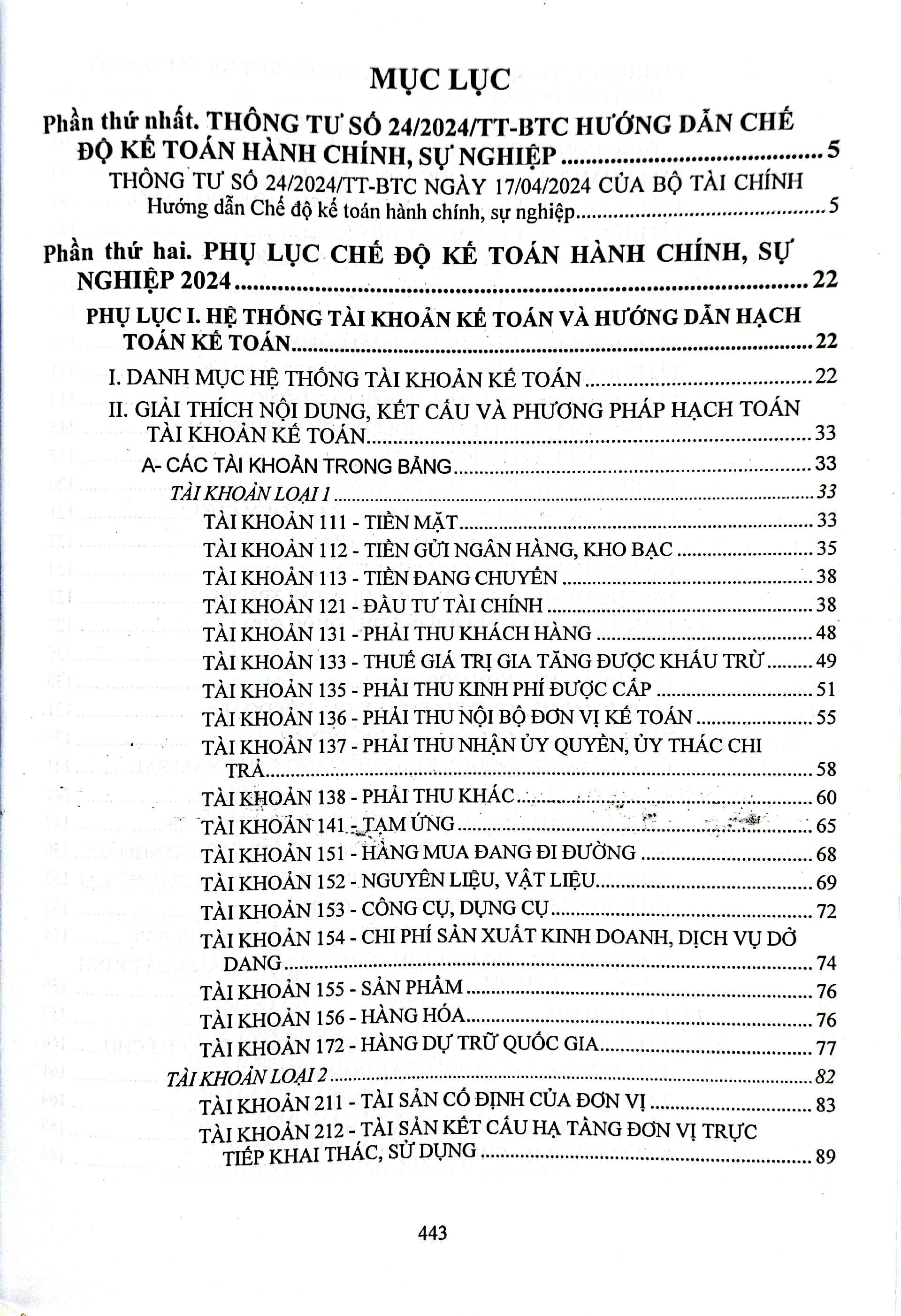 Phần thứ hai. PHỤ LỤC CHẾ ĐỘ KẺ TOÁN HÀNH CHÍNH, SỰ NGHIỆP 2024