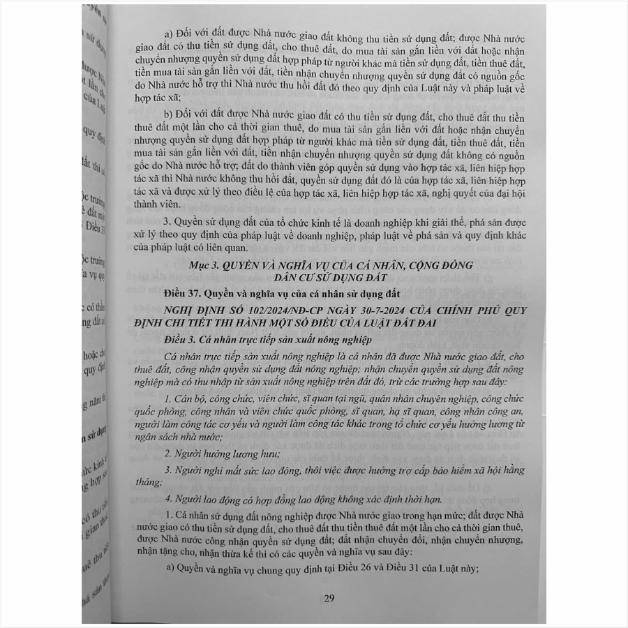 Ngày 18/01/2024, Quốc hội nước Cộng hòa xã hội chủ nghĩa Việt Nam thông qua Luật Đất đai số 31/2024/QH15, đã thể chế hóa đầy đủ, kịp thời các quan điểm, chủ trương của Đảng