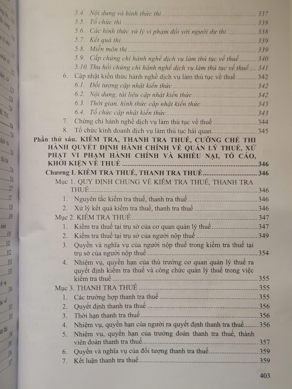 Phần thứ sáu. KIỂM TRA, THANH TRA THUẾ, CƯỠNG CHẾ THI HÀNH QUYẾT ĐỊNH HÀNH CHÍNH VỀ QUẢN LÝ THUẾ, XỬ PHẠT VI PHẠM HÀNH CHÍNH VÀ KHIẾU NẠI, TỐ CÁO, KHỞI KIỆN VỀ THUẾ.