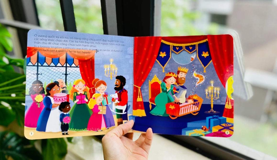 - Cuốn sách Công chúa tóc mây Đối tượng sử dụng Bộ sách phù hợp với trẻ từ 0 đến 6 tuổi, đang trong giai đoạn khám phá và hình thành thế giới quan. Tóm tắt nội dung Bộ sách gồm nhiều câu chuyện cổ tích quen thuộc được kể lại một cách sinh động và hấp dẫn. Mỗi trang sách đều được thiết kế với các chi tiết chuyển động như kéo, đẩy, xoay, giúp bé tương tác trực tiếp với câu chuyện. Bé sẽ được khám phá những khung cảnh tuyệt đẹp, gặp gỡ những nhân vật đáng yêu và cùng họ trải qua những cuộc phiêu lưu thú vị. Ưu điểm Tương tác trực tiếp: Bé có thể tự tay kéo, đẩy, xoay các chi tiết trên trang sách, tạo ra những hình động thu hút sự chú ý và tập trung của trẻ. Phát triển toàn diện: Khả năng vận động: Các hoạt động tương tác giúp bé rèn luyện khả năng vận động tay, tăng cường sự khéo léo. Trí tưởng tượng: Hình ảnh sinh động và các chi tiết chuyển động kích thích trí tưởng tượng của bé. Ngôn ngữ: Nội dung song ngữ giúp bé làm quen với tiếng Anh, phát triển vốn từ vựng. Nhận thức: Bé sẽ học được nhiều điều mới về thế giới xung quanh qua những câu chuyện cổ tích. Chất lượng cao: Sách được làm từ chất liệu an toàn, bền đẹp, đảm bảo an toàn cho bé khi sử dụng. Đa dạng chủ đề: Với 50 chủ đề, bé có thể lựa chọn những câu chuyện mình yêu thích.