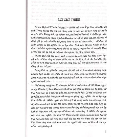 Đất nước đang bước vào một thời kỳ xây dựng mới, thời kỳ của công nghiệp hóa và hiện đại hoá theo định hướng xã hội chủ nghĩa, đòi hỏi mỗi một người Việt Nam phải có sự hiểu biết đầy đủ hơn, mới mẻ hơn về toàn bộ lịch sử dân tộc theo tinh thần ôn cố tri ân, lấy xưa phục vụ nay. Trước yêu cầu chính đáng và to lớn đó, Nhà xuất bản Giáo dục đã tổ chức biên soạn và cho xuất bản Bộ sách Đại cương lịch sử Việt Nam gồm 3 tập: