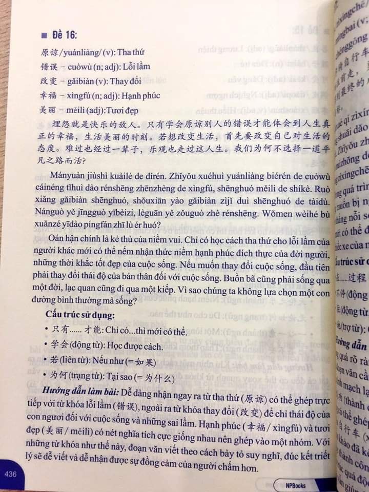 1. Giới thiệu sách: Bài Tập Củng Cố Ngữ Pháp HSK – Cấu Trúc Giao Tiếp & Luyện Viết HSK 4-5 Kèm Đáp Án Tác giả: Nhật Phạm Số trang: 490 Ngày xuất bản: 01/11/2017 Nhà Xuất Bản: Dân Trí Giá bìa: 300,000 VNĐ MUỐN GIỎI NGỮ PHÁP CẤU TRÚC TIẾNG TRUNGMUỐN VIẾT HSK4-5 LÊN TRÌNH️Đừng bỏ qua cuốn này! ️ Bài tập ngữ pháp HSK1-6 ( Full ngữ pháp tiếng Trung) Luyện viết HSK4-5 với các đề thật HSK, sách có đáp án chi tiết, hướng dẫn làm bài! ️Lưu ý: Sách phù hợp cho các đối tượng từ cơ bản đến nâng cao! Đây là cuốn sách với tuyển tập các bài tập luyện dịch từ cơ bản đến nâng cao, phù hợp với các đối tượng bắt đầu học tiếng Trung với phần 1 "BÀI TẬP DỊCH TRUNG VIỆT-VIỆT TRUNG CỦNG CỐ CẤU TRÚC CỐ ĐỊNH & NGỮ PHÁP (Dựa theo ngữ pháp tiếng Hán Sơ trung cấp hiện đại", còn các đối tượng đã học đến HSK5-6 vẫn hoàn toàn có thể sử dụng để nâng cao kỹ năng biên dịch cũng như phục vụ cho phiên dịch với phần 2 "BÀI TẬP DỊCH NÂNG CAO KỸ NĂNG DỊCH VÀ TĂNG CƯỜNG CẤU TRÚC DỊCH NÂNG CAO (Có cung cấp cấu trúc và sử dụng). Cuốn sách được biên soạn chi tiết tỉ mỉ với các phần bài tập kèm phần đáp án có hỗ trợ từ vựng, cấu trúc hiếm gặp, cấu trúc nâng cao. Phần 1 là các câu tiếng Việt hoặc tiếng Trung thường sử dụng được biên soạn dựa theo hệ thống ngữ pháp tiếng Hán hiện đại ở cả mảng giao tiếp và hàn lâm học thuật giúp các bạn cải thiện, hoàn thiện kiến thức cũng như thực hành ứng dụng các mảng ngữ pháp, cấu trúc, đồng thời củng cố thêm vốn từ vựng tiếng Trung ứng dụng. Phần 2 là các đoạn văn ngắn với dung lượng 100-300 từ trong các lĩnh vực của đời sống như giao tiếp thương mại, kinh tế, giáo dục, du lịch, địa lý, đất nước con người Việt Nam, Phần này giúp các bạn rèn luyện thêm kỹ năng dịch, tích lũy các cấu trúc tiếng Trung nâng cao cũng như lượng từ vựng vô cùng phong phú ở nhiều lĩnh vực.Để có được cuốn sách giá trị này, NP BOOKS xin chân thành cảm ơn các biên tập viên Linh Chi, Thùy Linh, Hải Yến đã hỗ trợ chủ biên Nhật Phạm, đặc biệt cảm ơn cô giáo Khâu Phượng Nghi (Giáo viên Trung Quốc) đã dành nhiều thời gian để kiểm duyệt nội dung, giúp cho cuốn sách có được tính bản ngữ tối đa đối với ngôn ngữ Trung Quốc.Chân thành cảm ơn độc giả đã, đang luôn yêu quý và ủng hộ những sản phẩm của NP BOOKS, hy vọng rằng độc giả sẽ có những ý kiến đóng góp để cuốn sách được hoàn thiện hơn nữa trong những lần tái bản sau.