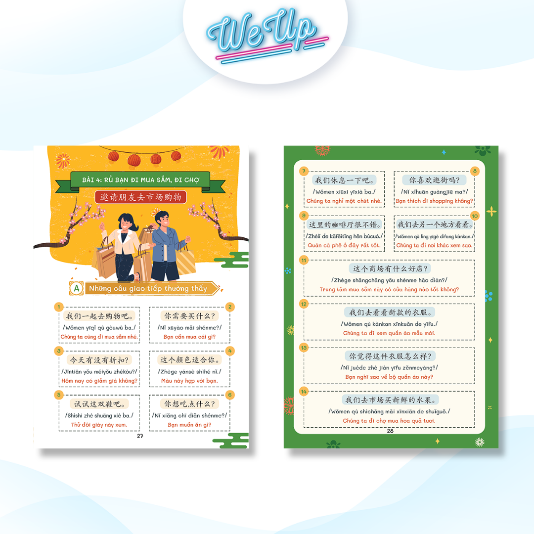 Sách gồm 15 bài học thực tế, từ các câu chào hỏi cơ bản, giới thiệu về gia đình và sở thích cá nhân, đến các chủ đề nâng cao như thời gian, mua sắm, phương tiện giao thông và hơn thế nữa. Các bài học về ăn uống, đặt món, đặt phòng khách sạn, kế hoạch du lịch, thời tiết, môi trường làm việc và sức khỏe không chỉ giúp người học tiếp xúc với từ vựng cần thiết mà còn rèn luyện khả năng sử dụng ngôn ngữ một cách linh hoạt. Sách cũng chú trọng đến giáo dục, giải trí, thể thao, văn hóa và phong tục, giúp người học có cái nhìn toàn diện về ngôn ngữ và văn hóa Trung Quốc.