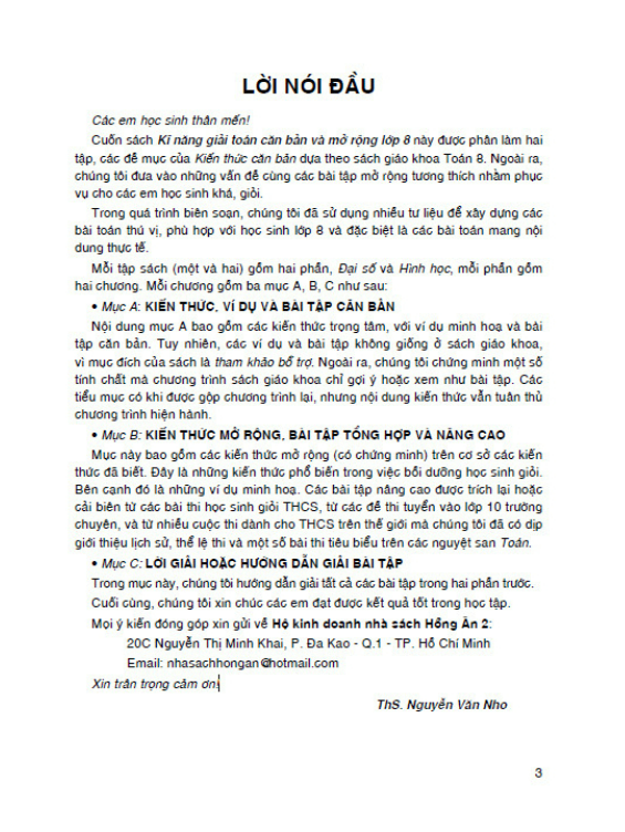 Kĩ Năng Giải Toán Căn Bản Và Mở Rộng Lớp 8 được biên soạn theo các bài tập tương tự sách giáo khoa. Ngoài ra, đưa vào nhiều dạng bài tập mở rộng cho học sinh khá giỏi.