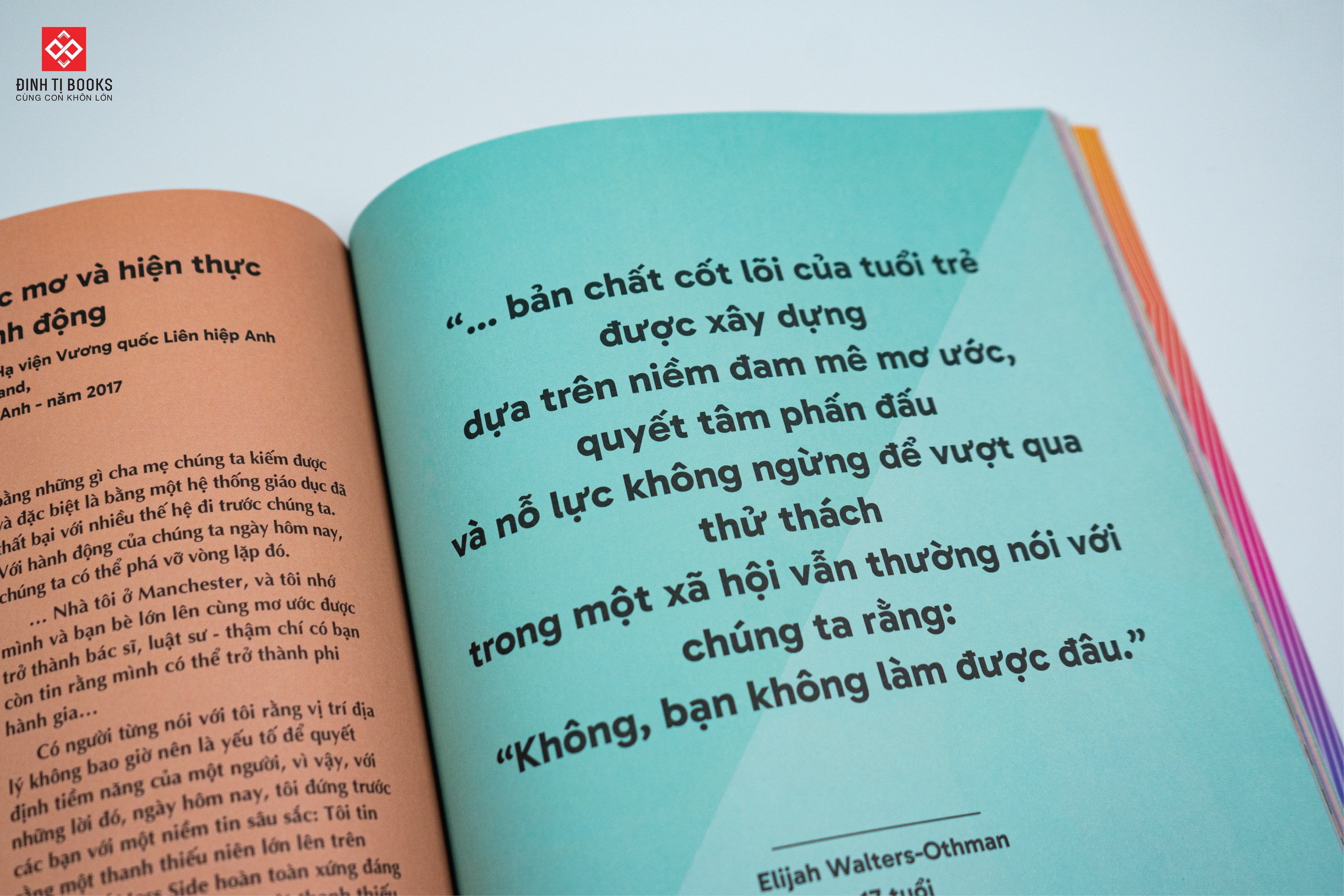 Cuốn sách mang đến thông điệp ý nghĩa, là lời nhắc nhở rằng, trong suốt lịch sử phát triển của nhân loại, luôn có những người trẻ dám đứng lên để bảo vệ lý tưởng. Không phân biệt giới tính, quốc gia hay ngành nghề, họ đều có chung một đặc điểm: dám nói lên quan điểm và hành động vì cộng đồng.