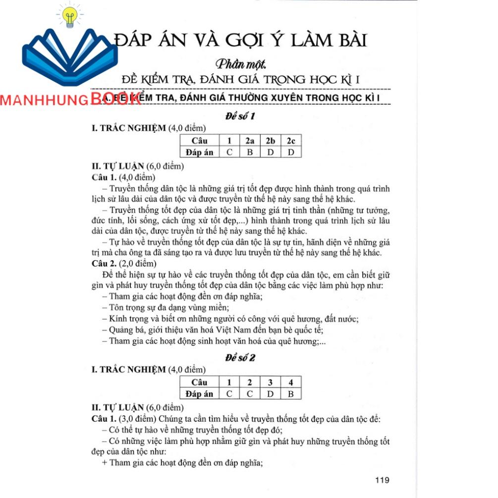 Ngoài ra, ở cuối sách có phần đáp án và gợi ý làm bài giúp các em có thể tham khảo, nhanh chóng nhằm tiếp thu, lĩnh hội và hệ thống hoá kiến thức đã học.
