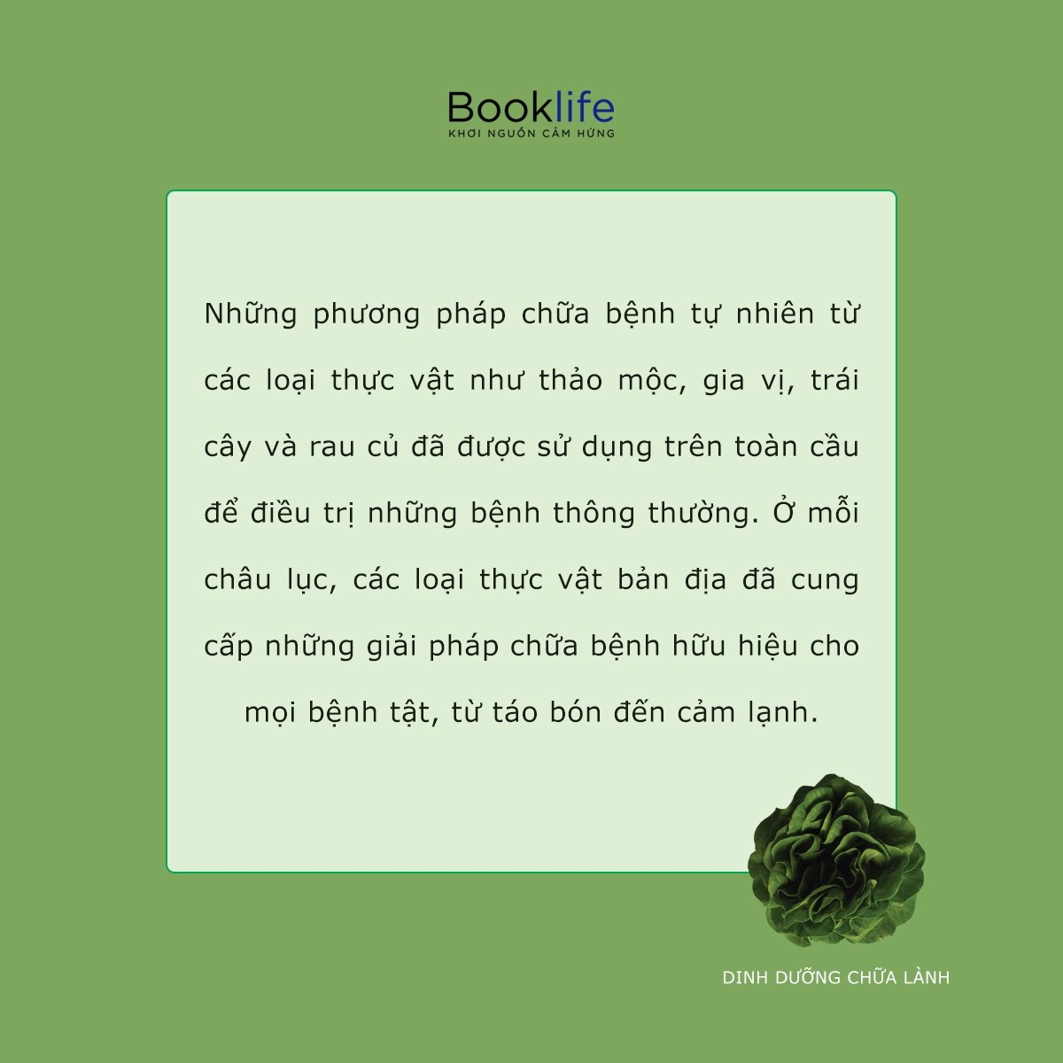 Cuốn sách Dinh dưỡng chữa lành - Chế độ ăn uống phòng bệnh hiệu quả từ 50 loại thực vật cơ bản là một nguồn tài nguyên dinh dưỡng vô giá cho bất kỳ ai vừa muốn cải thiện sức khỏe tổng thể, vừa muốn thưởng thức nhiều món ăn thơm ngon bổ dưỡng. Cụ thể, nội dung chính của cuốn sách đề cập đến khả năng chữa lành bệnh của thực phẩm.