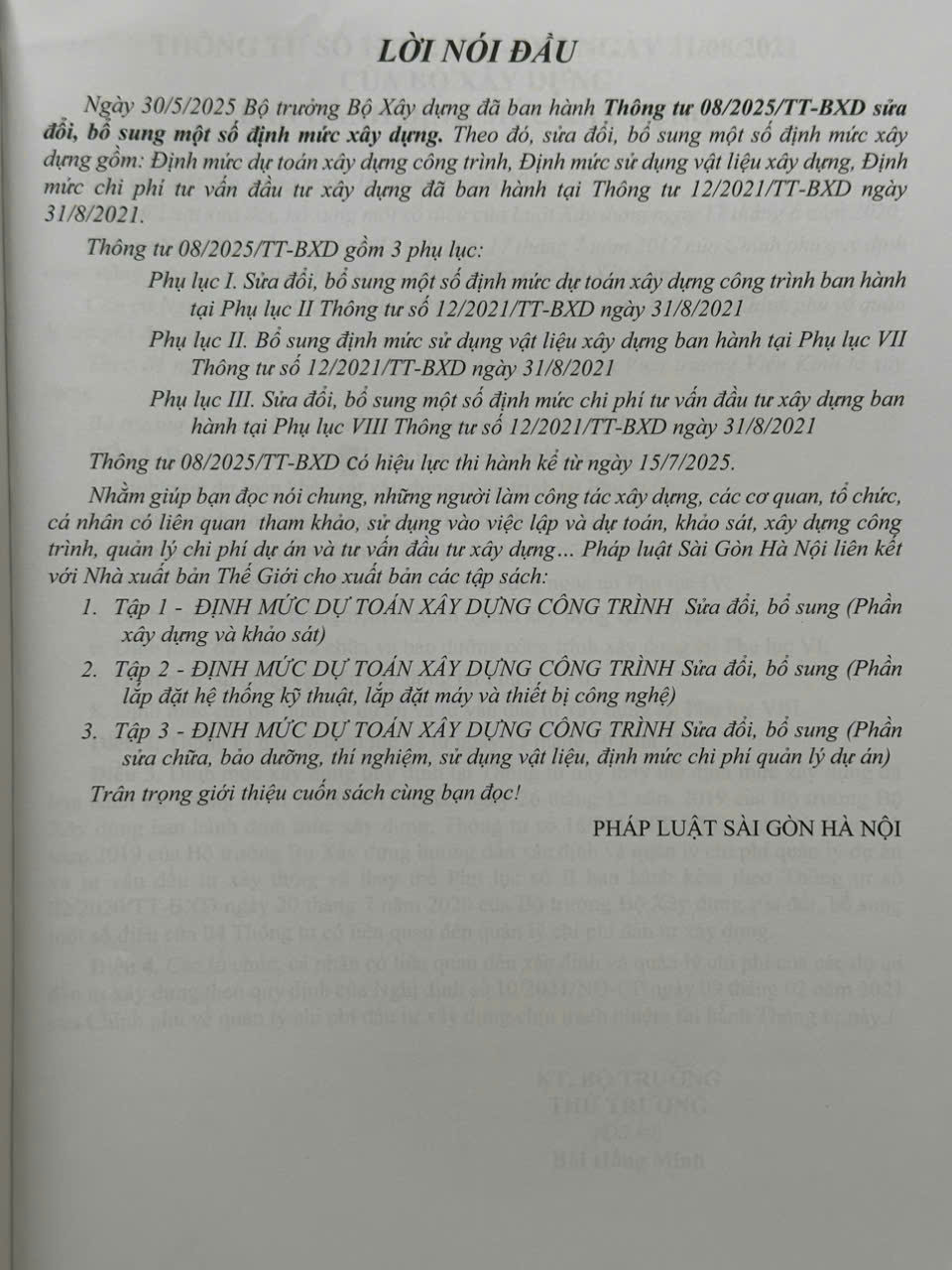Bộ Định Mức Dự Toán Xây Dựng Công Trình sửa đổi, bổ sung theo Thông Tư số 08/2025/TT-BXD gồm 3 tập:
