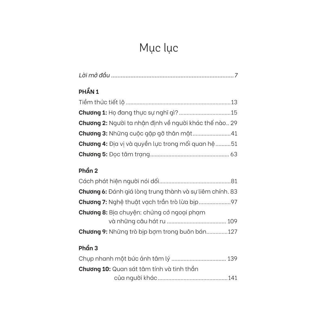 Giờ thì, lại gần một thập kỷ nữa trôi qua, nhờ nỗ lực nghiên cứu tâm lý ngôn ngữ học, khoa học thần kinh và khoa học nhận thức, khoa học hành vi mà cuốn sách mới này đã đạt được một bước nhảy vượt bậc. Tôi sẽ giới thiệu với các bạn những phương pháp mới nhất trong việc đọc vị người khác, rồi sau đó bạn sẽ thấy mình gần như là có khả năng “đi guốc trong bụng” người ta vậy.