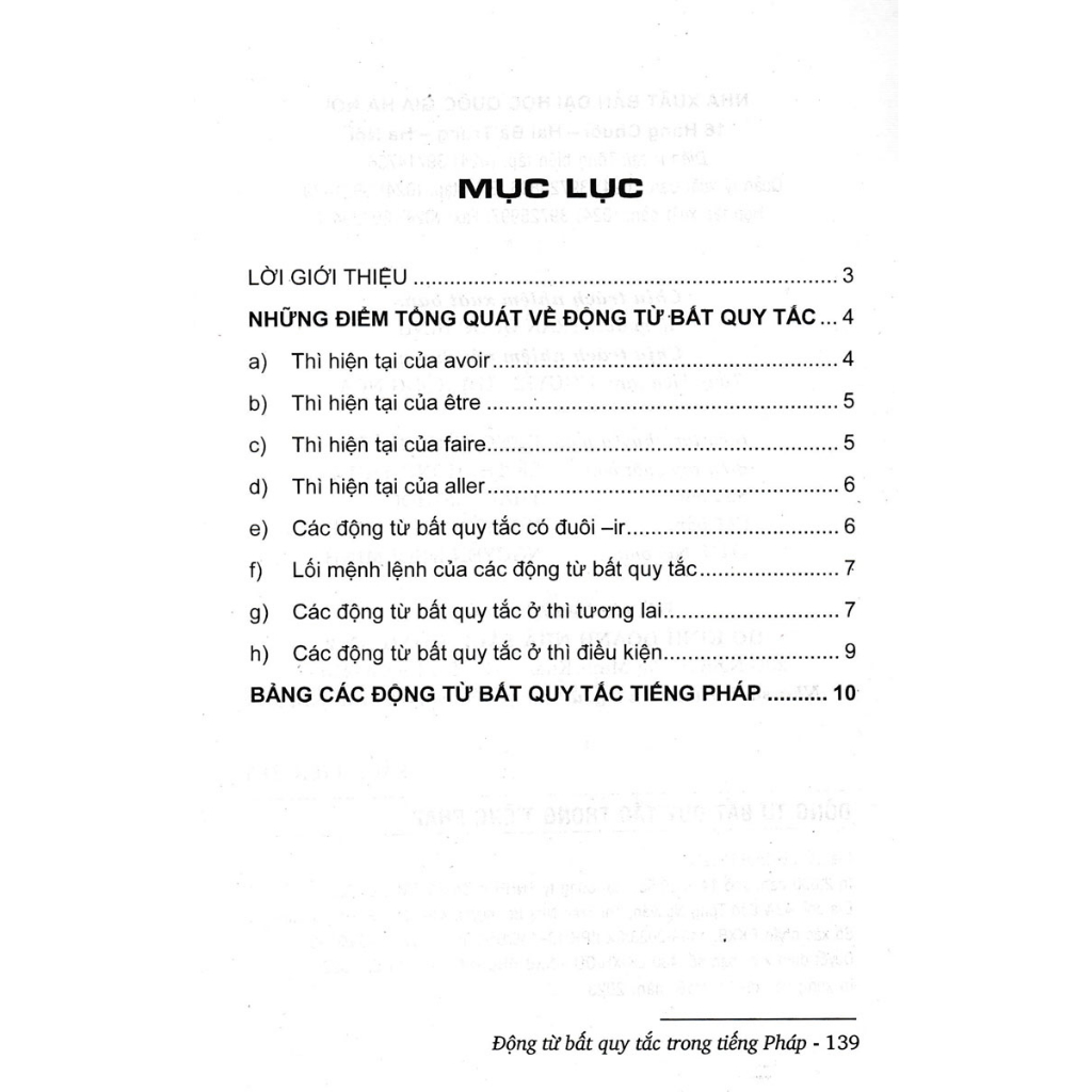 Chúng tôi hy vọng cuốn sách này sẽ giúp các bạn học sinh và học viên sẽ có được kiến thức tốt về động từ bất quy tắc tiếng Pháp và sử dụng chúng thành thạo.