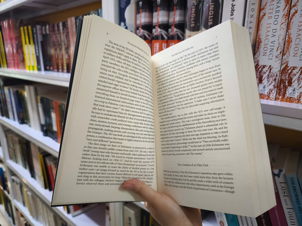 Được đưa lậu ra khỏi châu Âu sau khi Đức sụp đổ, Eichmann đã xoay xở để sống một cuộc sống lưu vong hòa bình và năng động ở Argentina trong nhiều năm trước khi bị Mossad bắt giữ. Mặc dù từng được biết đến rộng rãi với những biệt danh như 'Người quản lý cuộc diệt chủng Holocaust', ông đã có thể tự miêu tả mình, từ hộp bị cáo ở Jerusalem năm 1960, như một viên chức quá tải làm việc theo lệnh - không hơn, ông nói, 'chỉ là một bánh răng nhỏ trong cỗ máy hủy diệt.