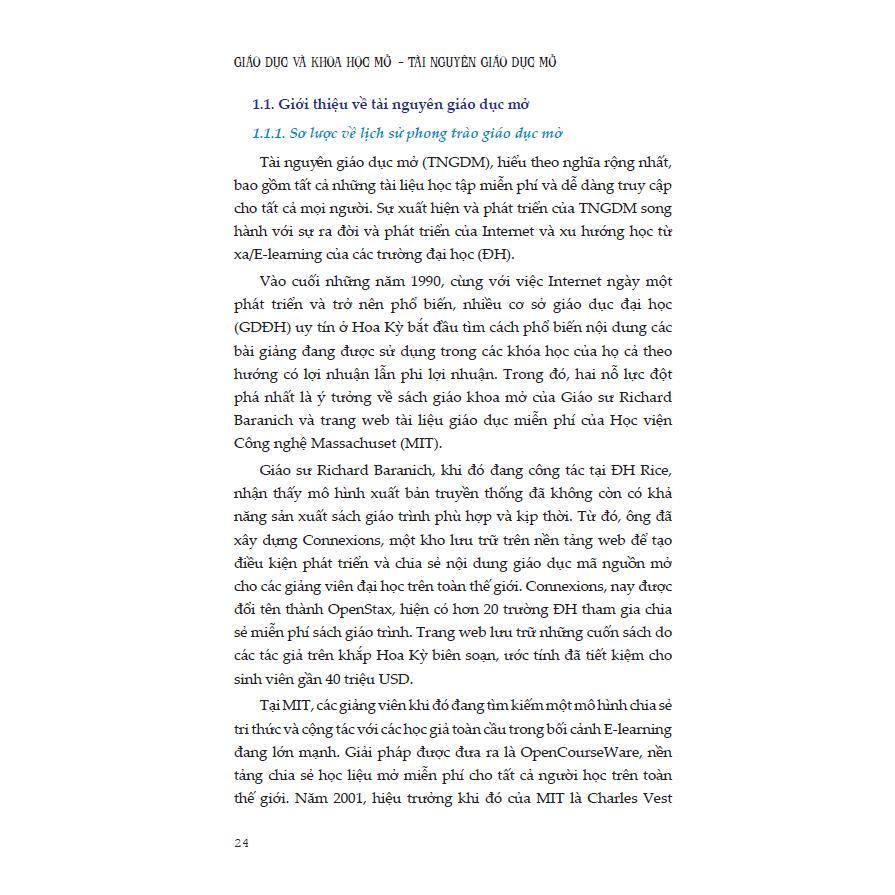 Với tinh thần đó, nhóm tác giả cũng đã mạnh dạn đề xuất một đề cương môn học tên gọi là “Giáo dục và Khoa học mở” giới thiệu ở phần Phụ lục của cuốn sách này.