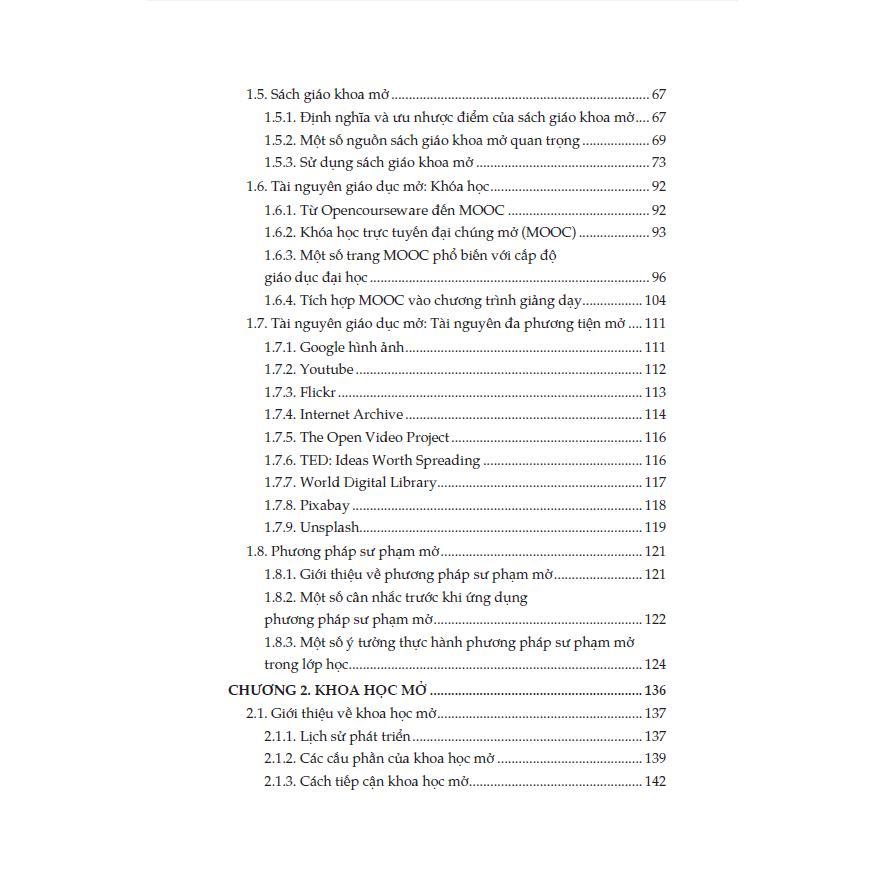 Ngoài ra, để đáp ứng nhu cầu của các cơ sở giáo dục và các tổ chức về việc giới thiệu, đào tạo, bồi dưỡng về giáo dục mở và khoa học mở, cuốn sách cũng cung cấp tại Phụ lục một đề cương khóa đào tạo ngắn ngày (4 buổi) về nội dung này.