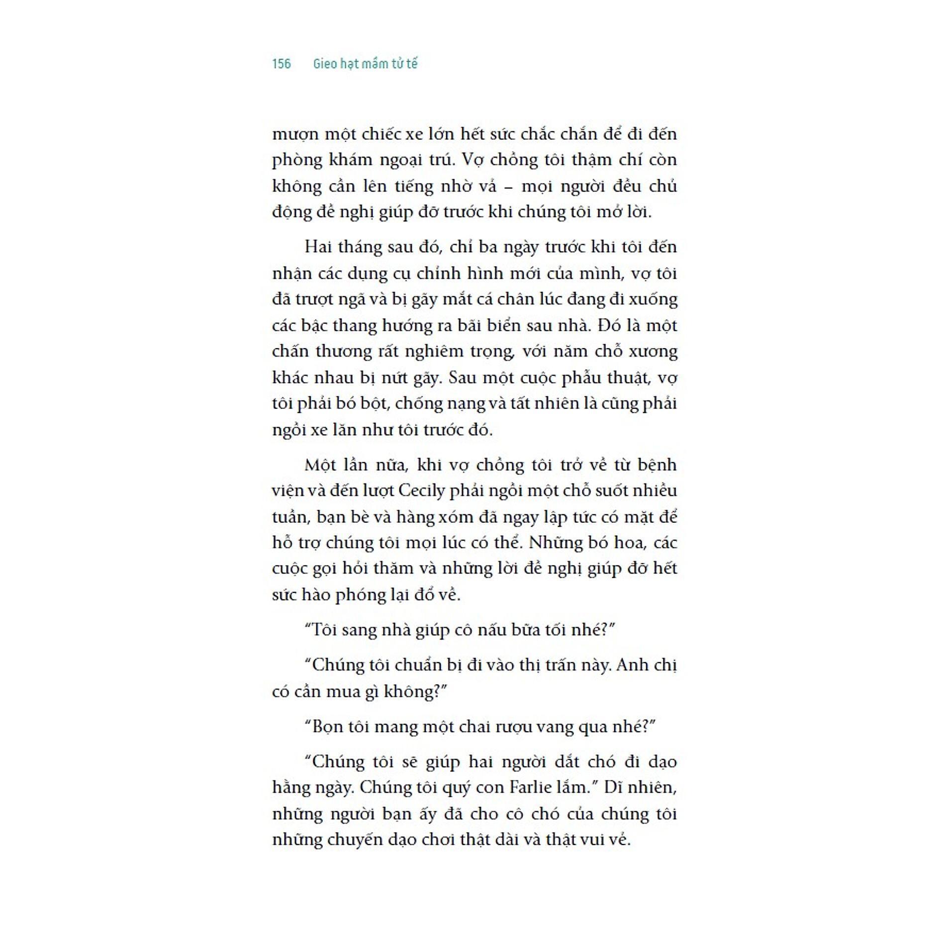 Mua tại Tiktok- Suy nghĩ tử tế, thái độ tử tế, hành động tử tế để hạnh phúc trọn vẹn - Bạn có nghĩ một hành động nhỏ của mình có thể thay đổi cuộc đời của một người nào đó không, hoặc… ngược lại? Ở thời đại mà những tin tức xã hội tiêu cực tràn ngập mặt báo, các chủ đề về bạo lực, chiến tranh hay tiêu đề giật gân về đời sống riêng tư của người nổi tiếng lại là từ khóa được nhiều người tìm kiếm, thật khó để tin rằng thế giới này vẫn còn tồn tại tình yêu thương, sự tử tế hay những hành động giúp đỡ vô điều kiện giữa người với người. Dù vậy, tử tế vẫn là một trong những điều tốt đẹp nhất mà chúng ta có thể trao cho nhau. Sự tử tế không nhất thiết phải là những việc quá lớn lao, mà chúng có thể bắt nguồn từ những hạt mầm bé nhỏ được ta “gieo trồng” mỗi ngày. Đó có thể chỉ là những hành động đơn giản và ngẫu nhiên, nhưng theo thời gian, với “sự chăm bón” đúng cách, chúng có thể tạo nên những thay đổi lớn lao không chỉ cho mỗi cá nhân mà còn cho cộng đồng và thế giới. Đây cũng chính là thông điệp nhân văn mà quyển sách mang đến cho độc giả. Quyển sách gồm 27 câu chuyện đời thường đầy gần gũi và cảm động nói về lòng tốt và sự tử tế trong cuộc sống. Với văn phong giản dị nhưng không kém phần sâu sắc, khiến bạn cảm nhận được tình yêu thương vẫn luôn tồn tại dù cuộc đời này có khắc nghiệt đến đâu đi nữa. Và bạn sẽ nhận ra rằng khi bạn dịu dàng với thế giới này, bạn cũng sẽ nhận lại sự dịu dàng từ thế giới. Nối tiếp chủ đề ý nghĩa về sự tử tế của Bộ sách Hạt Giống Tâm Hồn, không mang đến những câu chuyện truyền cảm hứng về cuộc đời của một vĩ nhân hay một người nổi tiếng nào, mà quyển sách chứa đựng những câu chuyện bình dị mà ta dễ dàng bắt gặp trong cuộc sống hằng ngày. Đó có thể là câu chuyện của cậu bé Arthur cực kỳ thông minh nhưng mắc chứng tự kỷ sẵn sàng nhường đĩa bánh tiramisu yêu thích cho một người ăn xin bên đường. Hay câu chuyện về bác tài xế Mike tốt bụng cho hai cô sinh viên bị hỏng xe đi nhờ một đoạn đường giữa đêm bão tuyết, nhờ vậy mà vô tình cứu hai cô gái thoát khỏi vụ tai nạn kinh hoàng chỉ vài phút sau đó. Và còn nhiều câu chuyện nhân văn giàu ý nghĩa khác sẽ chạm đến trái tim bạn. Những cung bậc cảm xúc len lỏi trên từng trang sách sẽ giúp bạn nhận ra cuộc sống vốn muôn màu muôn vẻ. Mỗi người mà ta gặp trên đường đời này không ai là ngẫu nhiên và những hành động tử tế của bạn dành cho họ không điều gì là vô ích. Cũng trong quyển sách này, bạn sẽ bắt gặp được hình ảnh của chính mình, của những người xung quanh, hoặc đứng ở vị trí “người ngoài cuộc” để chiêm nghiệm, khám phá những điều thật sự ý nghĩa và tìm ra châm ngôn sống cho chính mình. Khép lại quyển sách , hy vọng bạn sẽ có thêm động lực để yêu thương bản thân và những người xung quanh bằng cách giúp đỡ mọi người, ngay cả khi đó là một hành động nhỏ. Hy vọng những hạt mầm tử tế từ những việc nhỏ này sẽ được gieo trong tâm hồn bạn, để từ đó được bạn vun trồng, tưới mát rồi có một ngày bạn sẽ nhận được quả ngọt mà hạt mầm nhỏ ấy mang lại. Về tác giả: là tác giả sách bán chạy, Tổng biên tập của bộ sách . Kể từ năm 20, bà đã xuất bản 190 tựa sách mới cho , hầu hết đều bán chạy tại Hoa Kỳ và Canada. được ghi nhận là người làm hồi sinh - thương hiệu nổi tiếng khắp thế giới, ra mắt lần đầu tiên vào năm 1993. Để làm được điều này, Amy đã tuyển chọn và biên soạn những câu chuyện có thật đầy cảm hứng - từ những con người bình thường có trải nghiệm phi thường. Qua đó, Amy giúp thương hiệu lâu đời “Chicken Soup for the Soul” luôn giữ được tính mới mẻ và phù hợp với độc giả ngày nay.