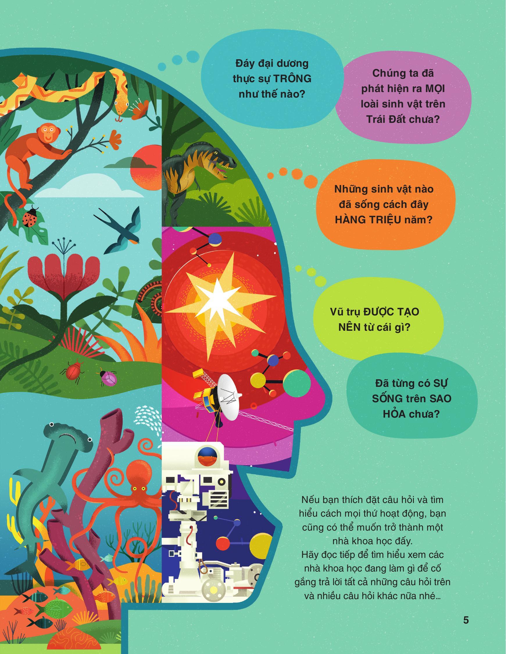 Qua bộ sách này sẽ giúp các bạn nhỏ nuôi dưỡng ước mơ, kích thích trí tò mò, quan sát thế giới xung quanh và đặt câu hỏi về cách thức hoạt động của nó. Bạn nhỏ sẽ biết liệu m.ình sẽ phù hợp với ngành khoa học nào nữa đấy!